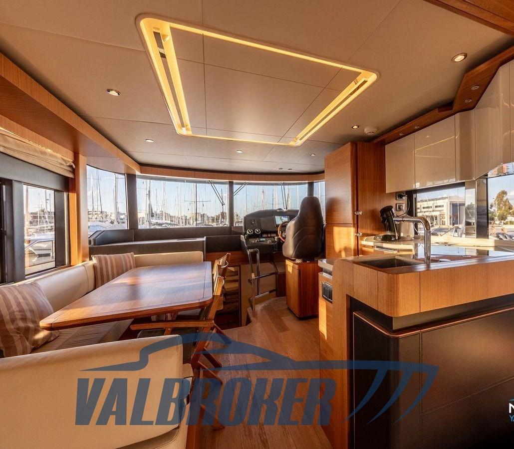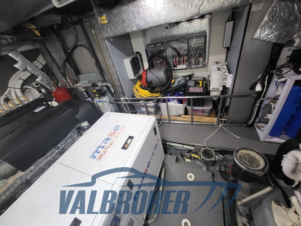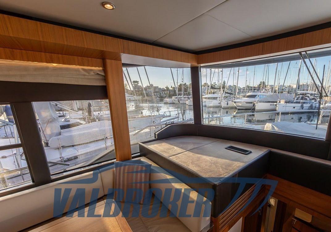 third helm station in the cockpit, pot stop forks, fresh water for deck washing, nappa grain leather sofa, saloon blinds, teak saloon table, leather cabin bed frame, wooden cabin floor, dark marble bathroom tops, Pre-wiring for gyroscopic stabilizer, Pre-wiring for watermaker, table on the flybridge,