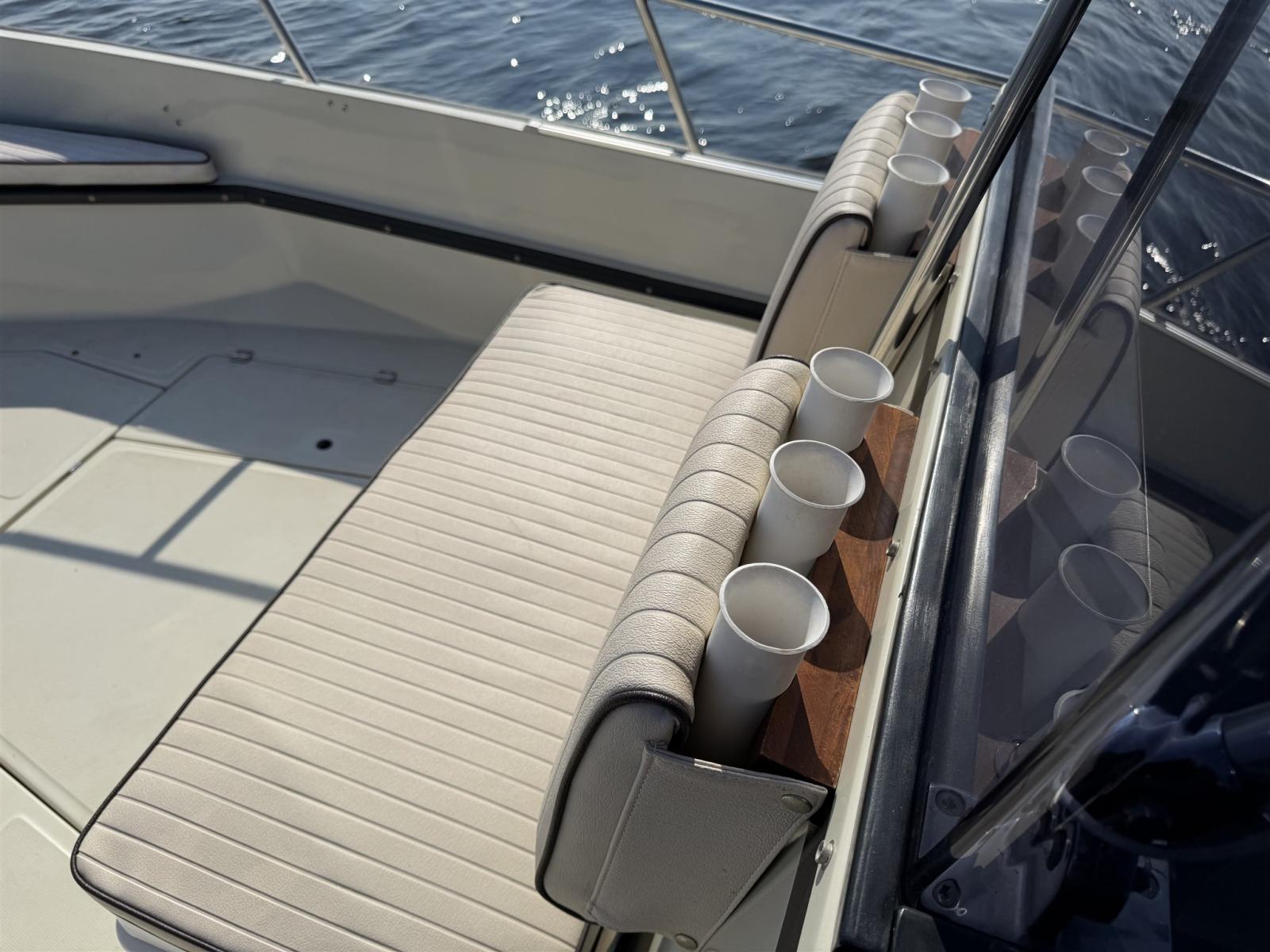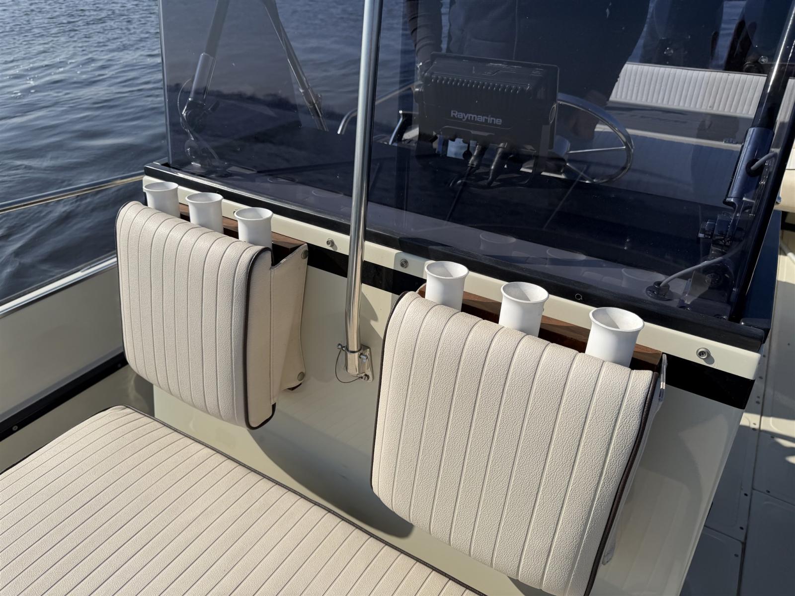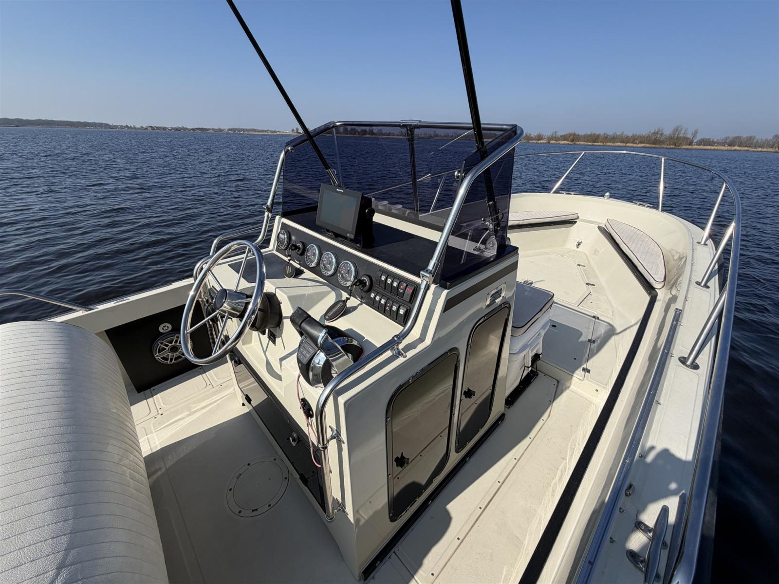 The layout is practical and spacious, ideal for comfortable day cruising, watersports, Fishing or relaxed days out with family and friends. At the same time, it delivers the solid and confident ride Boston Whaler is known for.