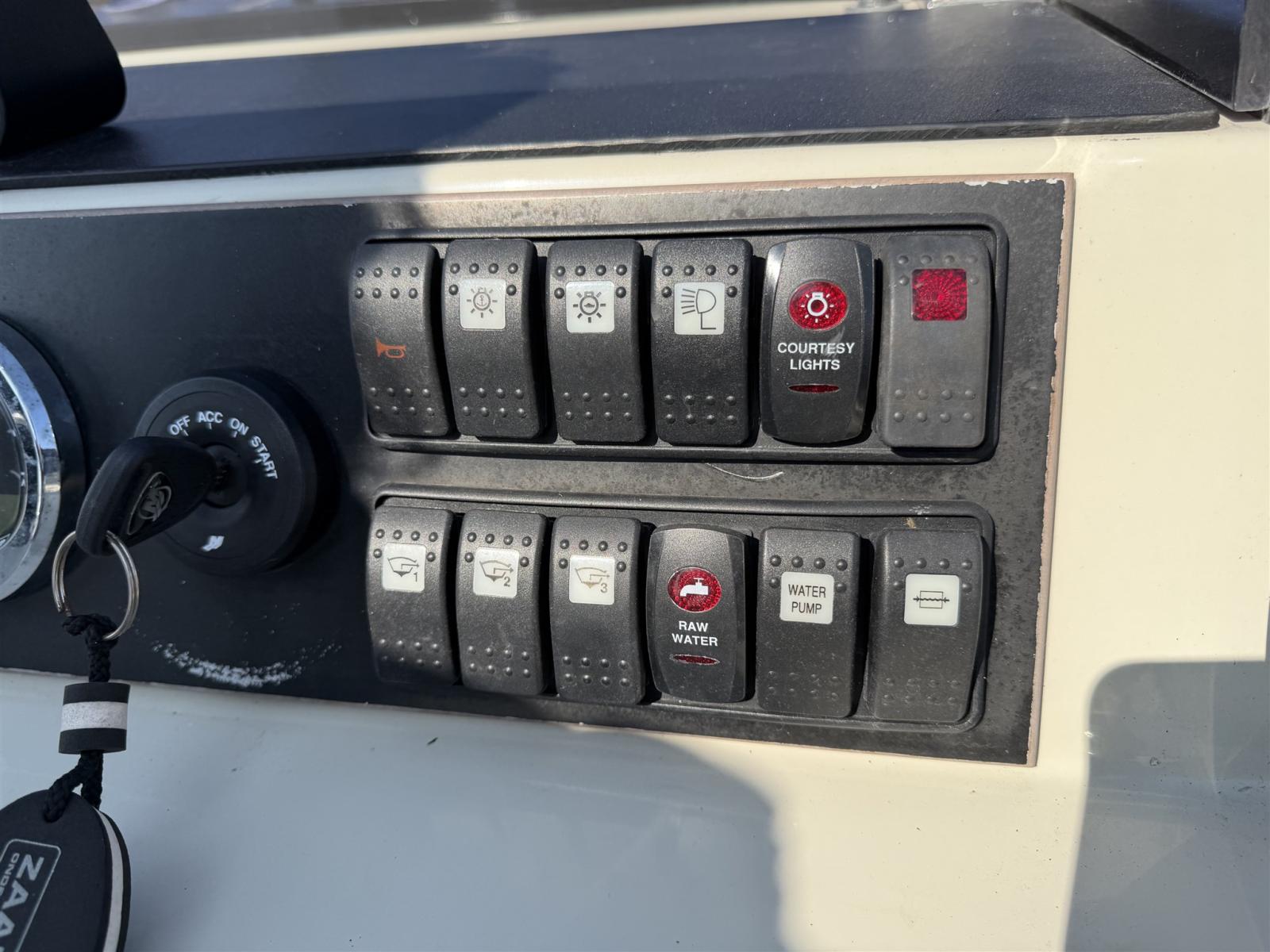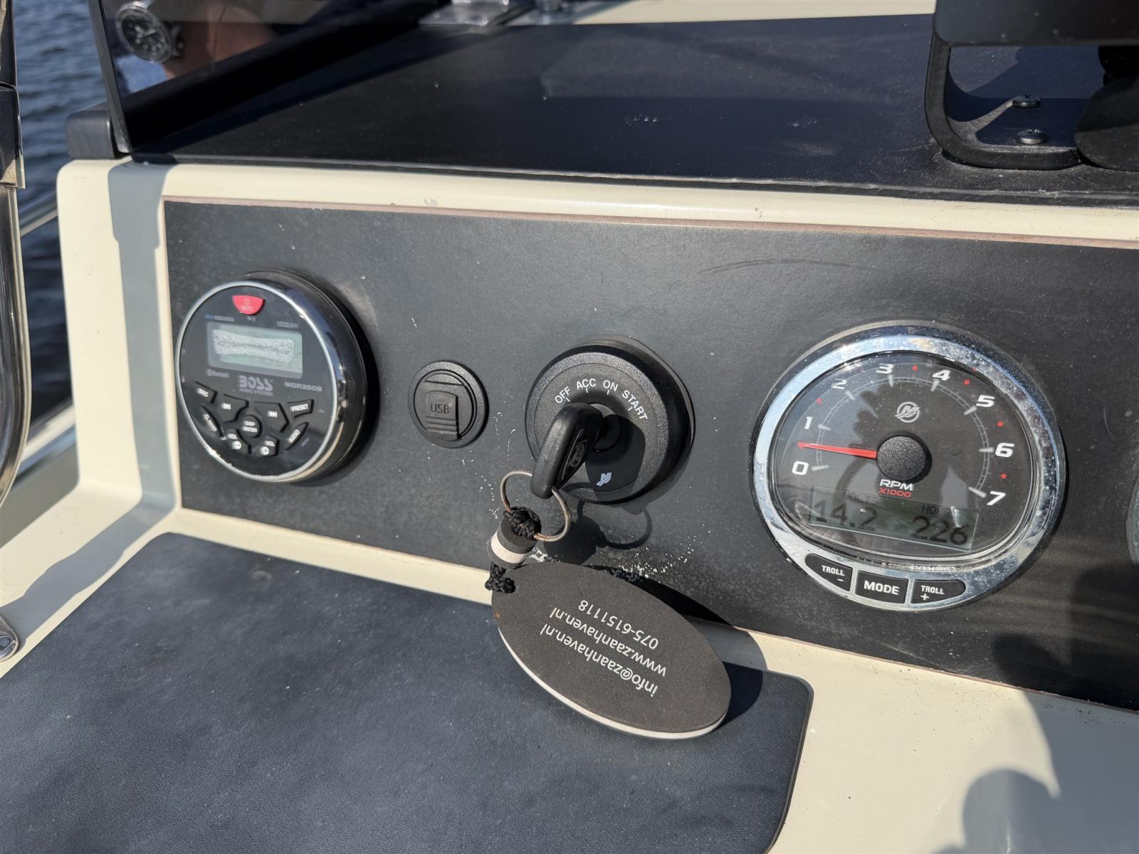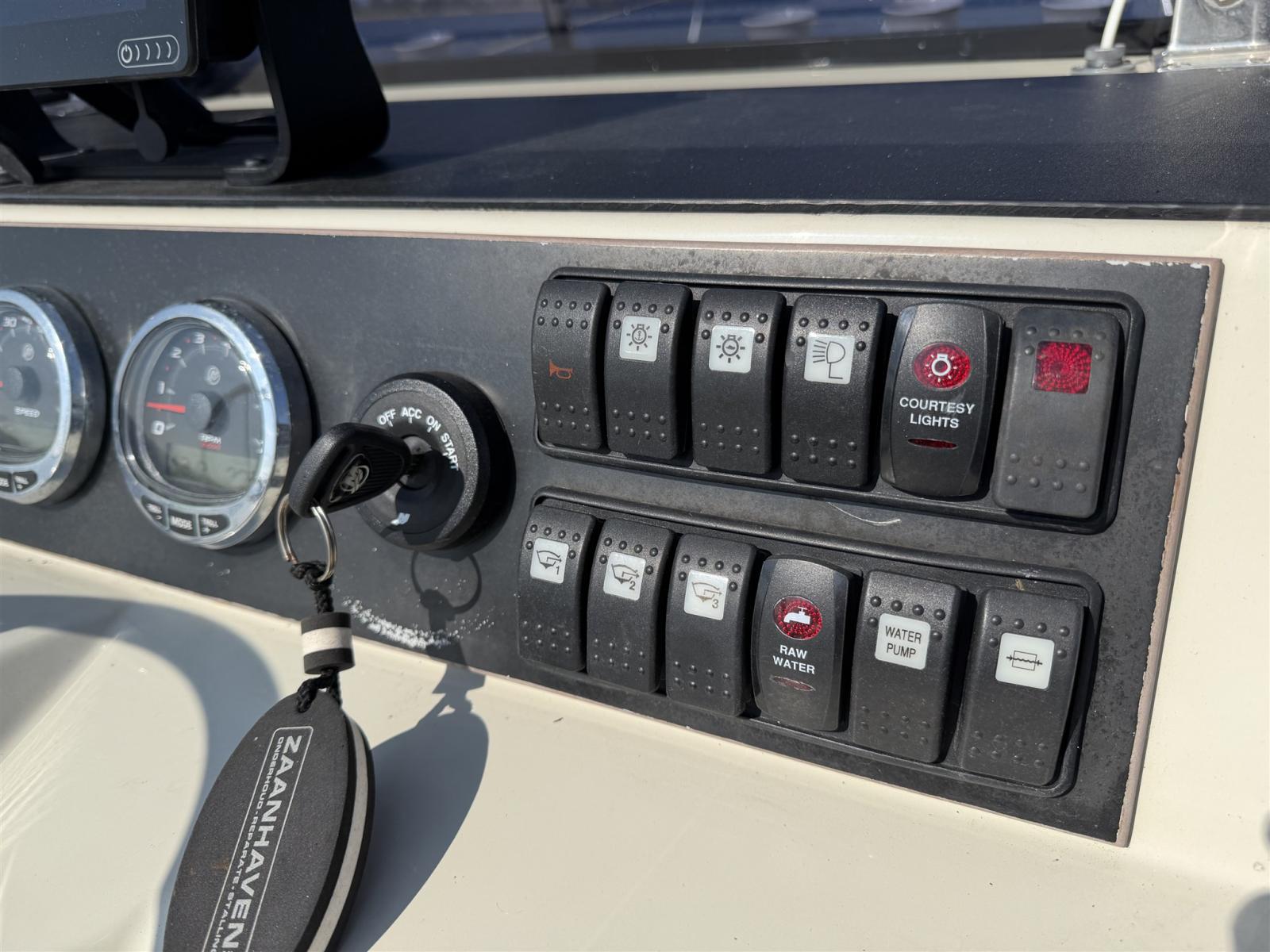 Electronic engine control, Display, Maps and guides, Chartplotter (Raymarine), Control panel, VHF Radio (Icom), Sonar.