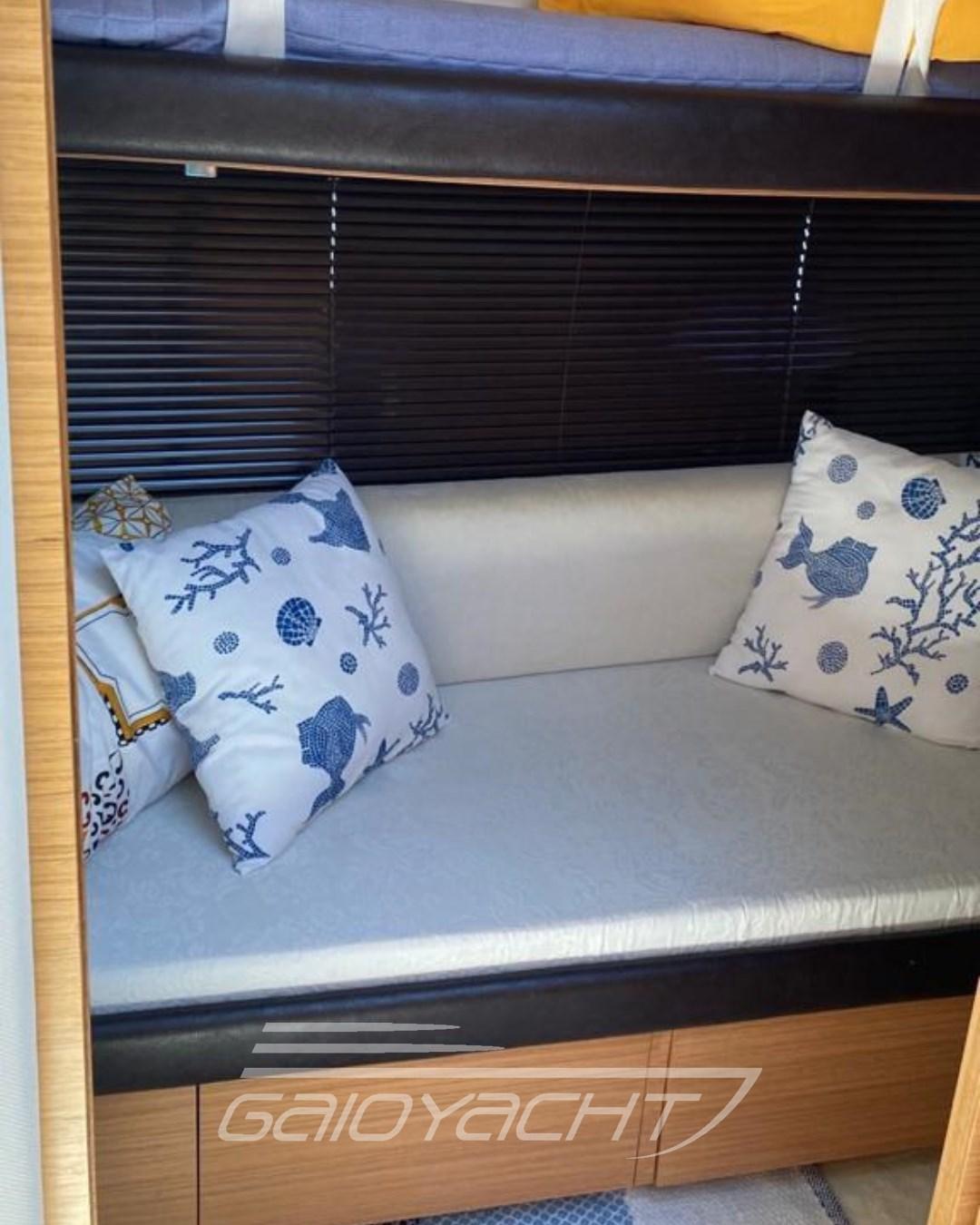 Electric Engine Compartment Opening, Water pressure pump, 5 Batteries (2 batterie servizi, 2 batterie motori, 1 batteria elica di prua), Deck Shower, Directional Spotlight, Tender Garage, Hard top (Elettrico), Fire Extinguishing System (Sala motori), Washbasin in the cockpit, Courtesy Lights, Underwater lights, Gangway (Telescopica), Entry door, Teak Cockpit, Shorepower connector, Water harbor connector system, Electric Windlass, swimming ladder, Saddles for tender, cockpit table, Living Room Foldable Table, Tender (Motore Yamaha hp15).
