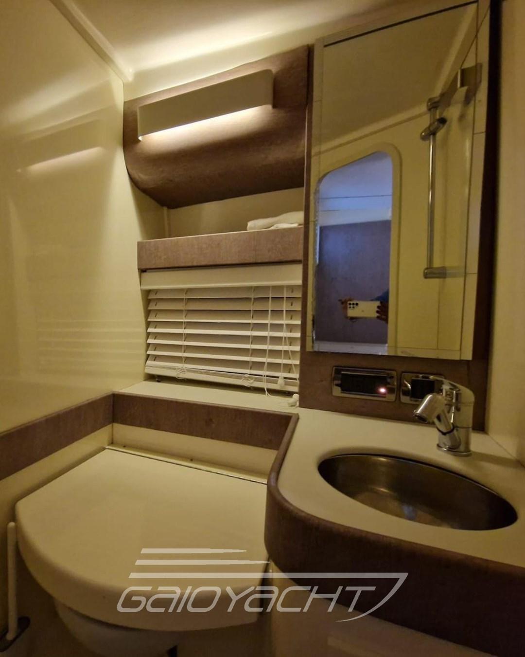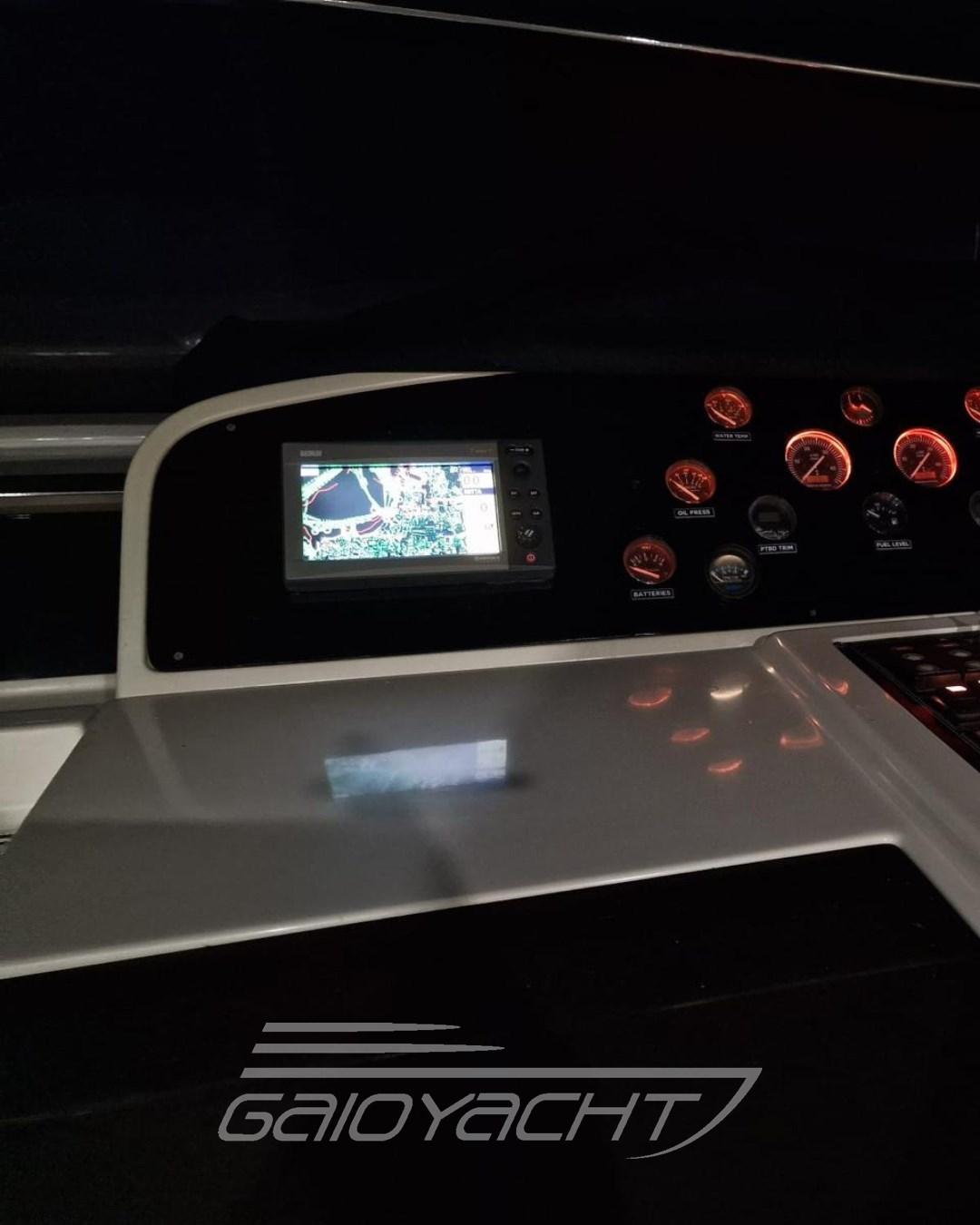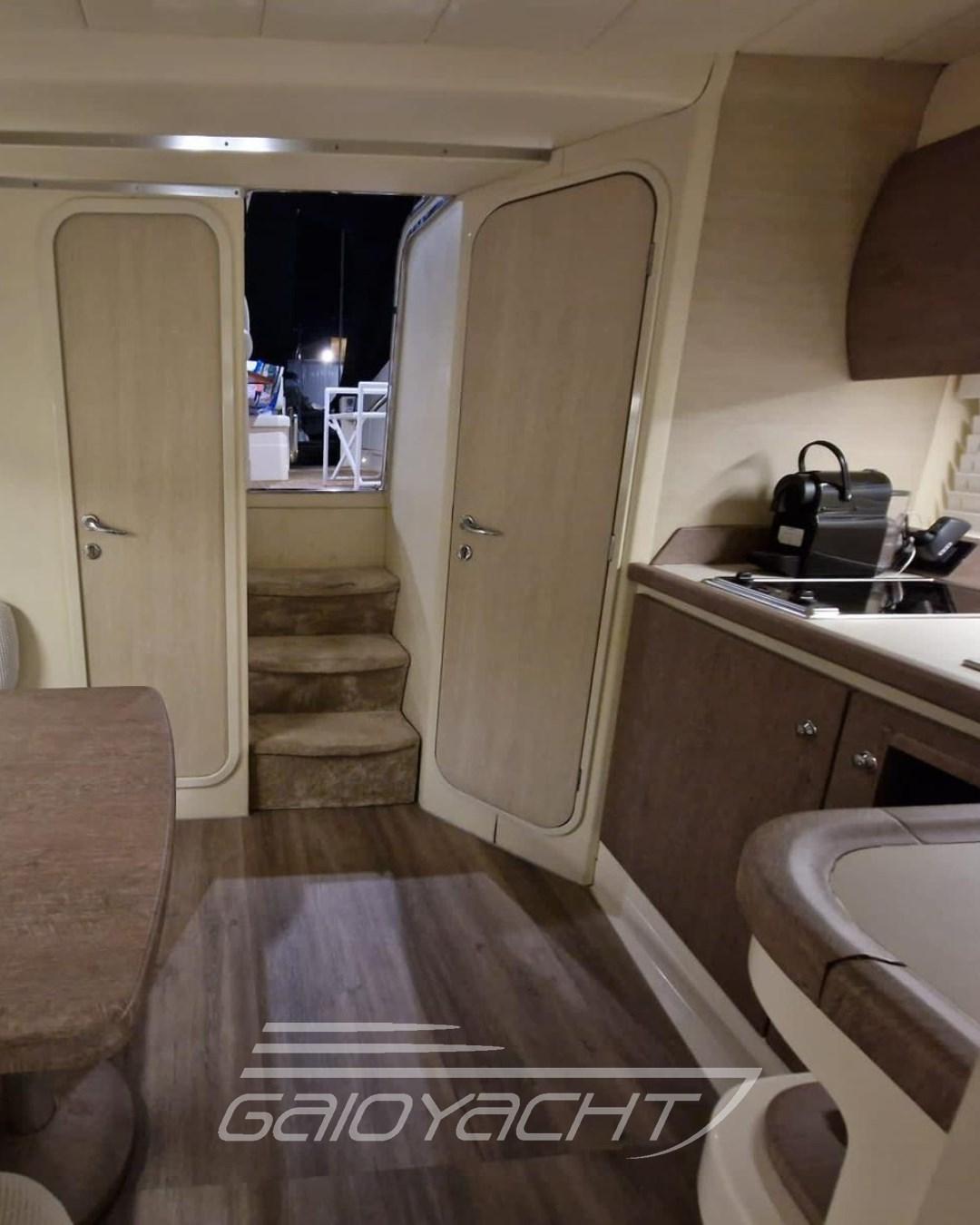 Flaps; Electric handcuffs; Complete Volvo Penta on-board instrumentation; External induction kitchenette (cockpit) with two burners and convenient sink; External kitchen cabinet (cockpit); Double fridge; Induction dinette kitchen plate with two burners; TV system in the cockpit and with TV in the owner's room; Hi-Fi radio.