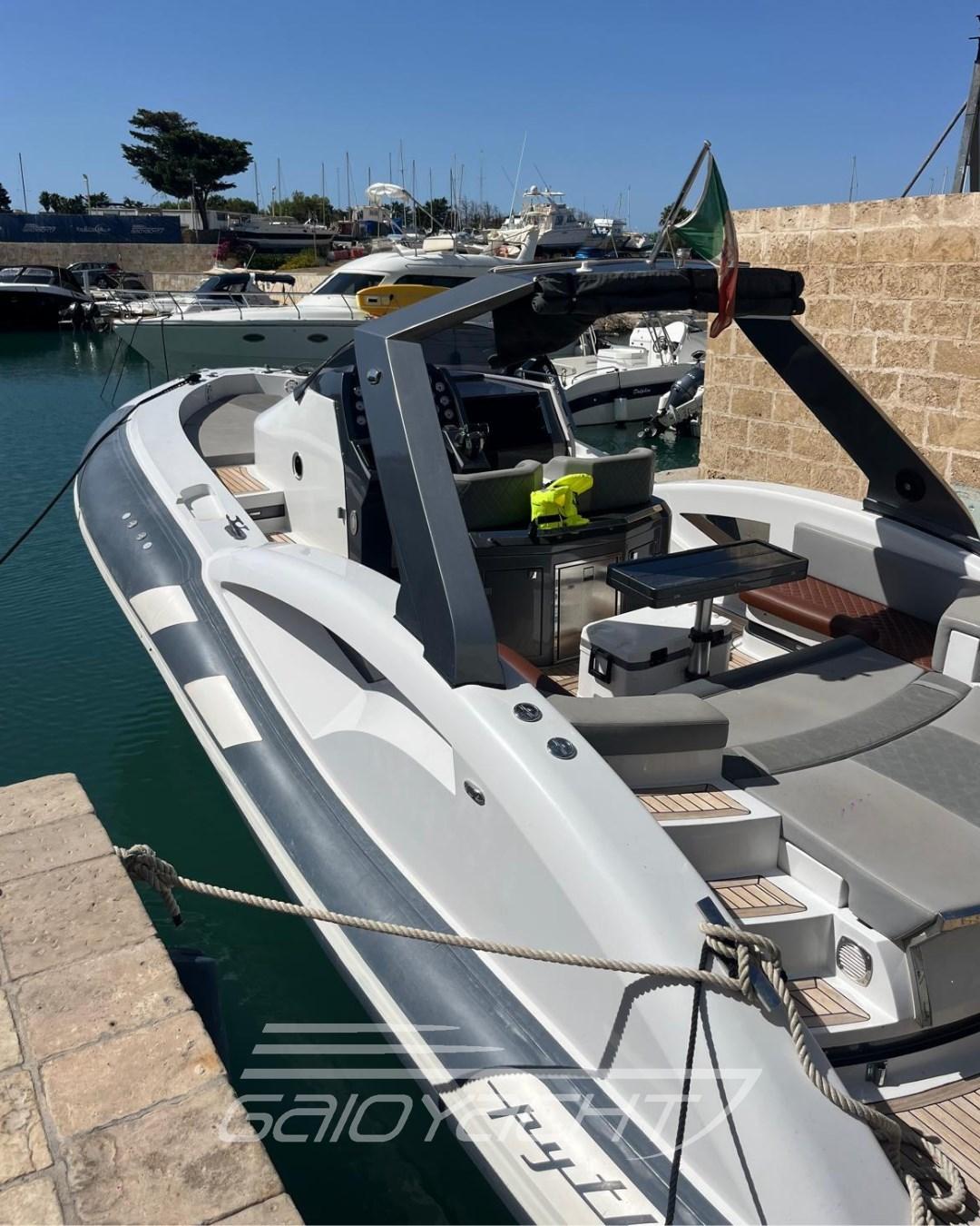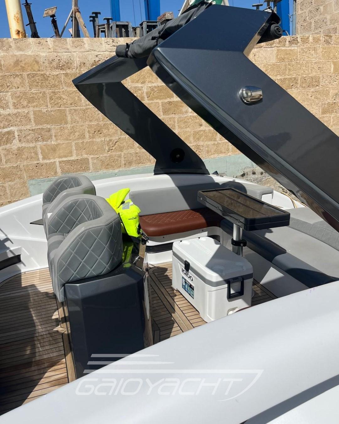 Electronic and synchronized handcuffs; Hydraulic flaps; Power generator; Flap indicators; Transom LED; Triple bilge with automatic bilge central pump; Large sofa with cockpit table; Chaise Longue; External hob; Full winter coverage; Audio system; Internal infinity portholes on the water.