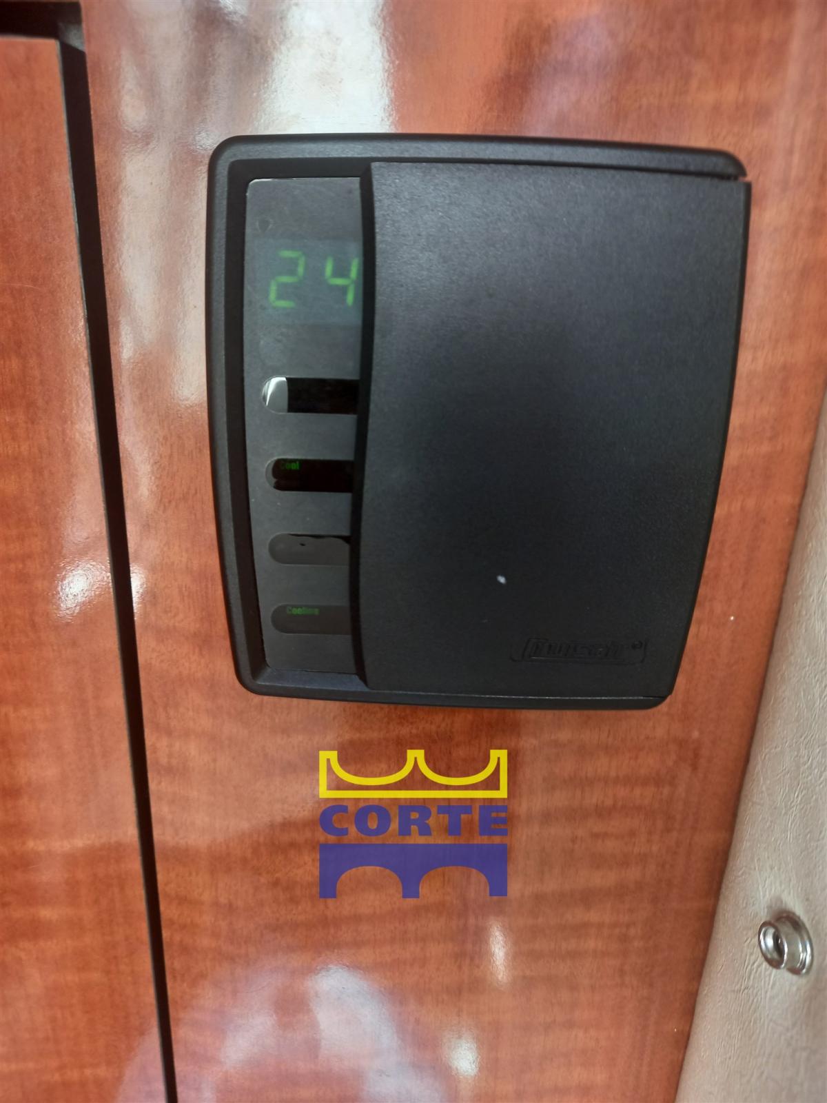 Engine Alarm, Bilge Alarm, Water pressure pump, Deck Shower (con acqua calda), Directional Spotlight, Hydraulic Flaps, Fire Extinguishing System, Washbasin in the cockpit, Courtesy Lights, 2 Underwater lights, Gangway (elettro idraulica), Platform (maggiorata), Manual Bilge Pump, Entry door, Shorepower connector, Rollbar, Electric Windlass, swimming ladder, cockpit table, Horn, Bow Winches.