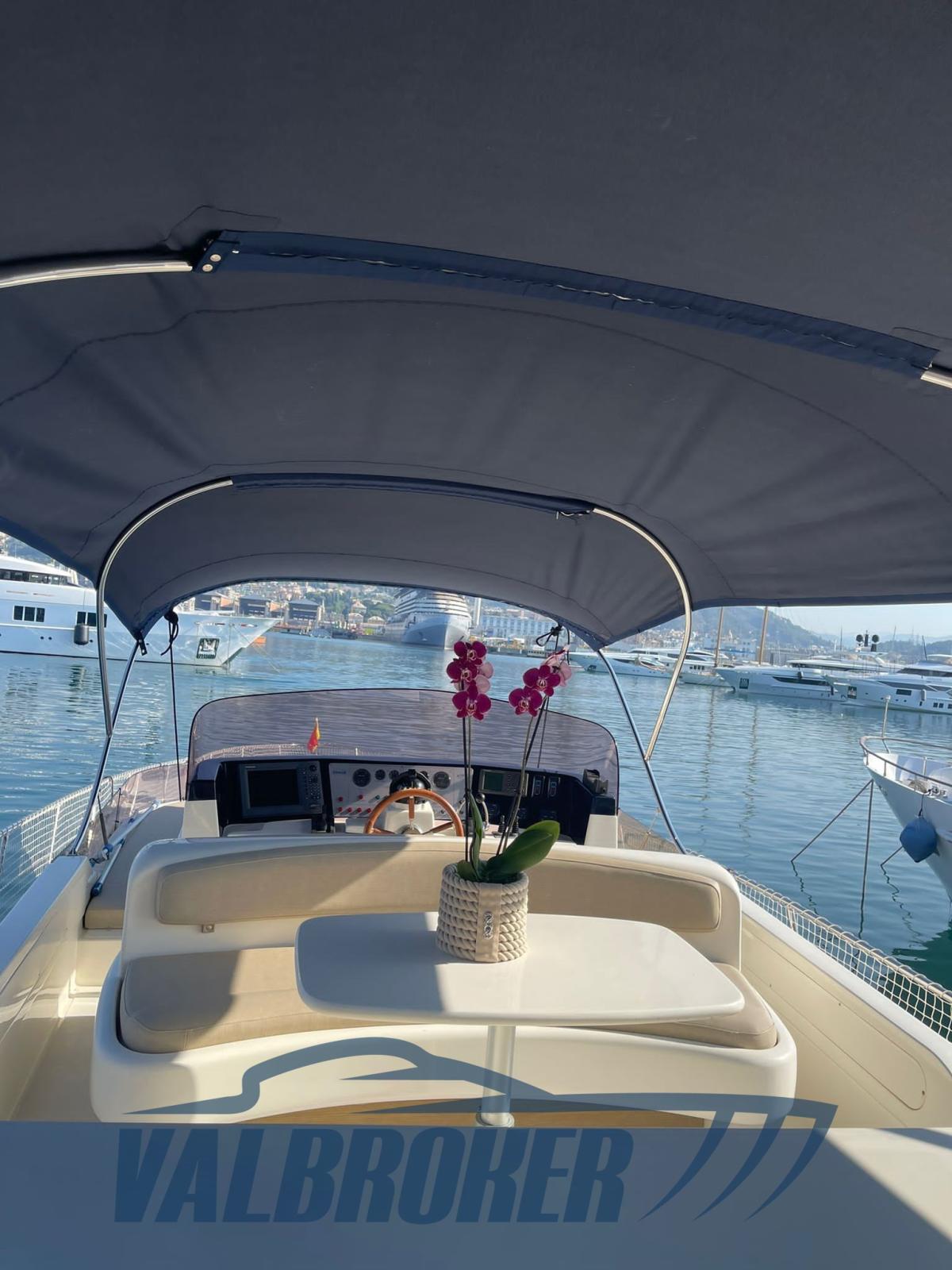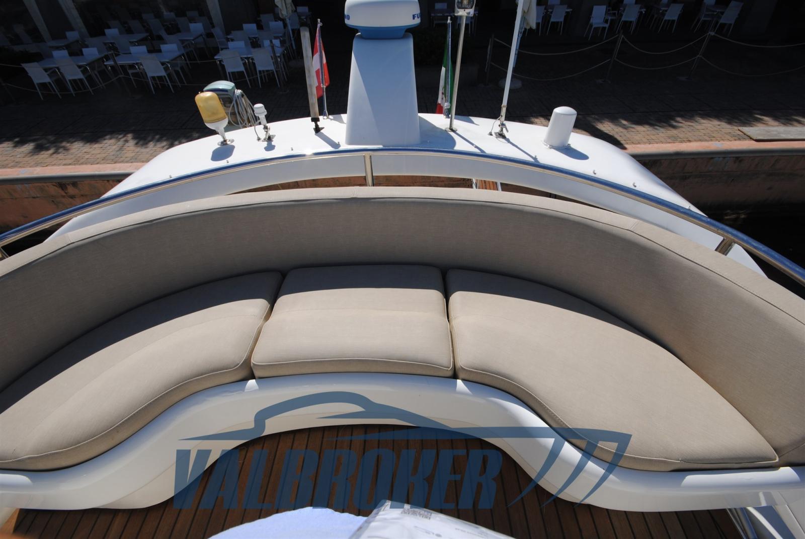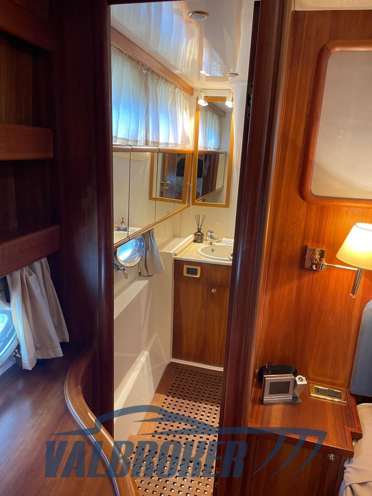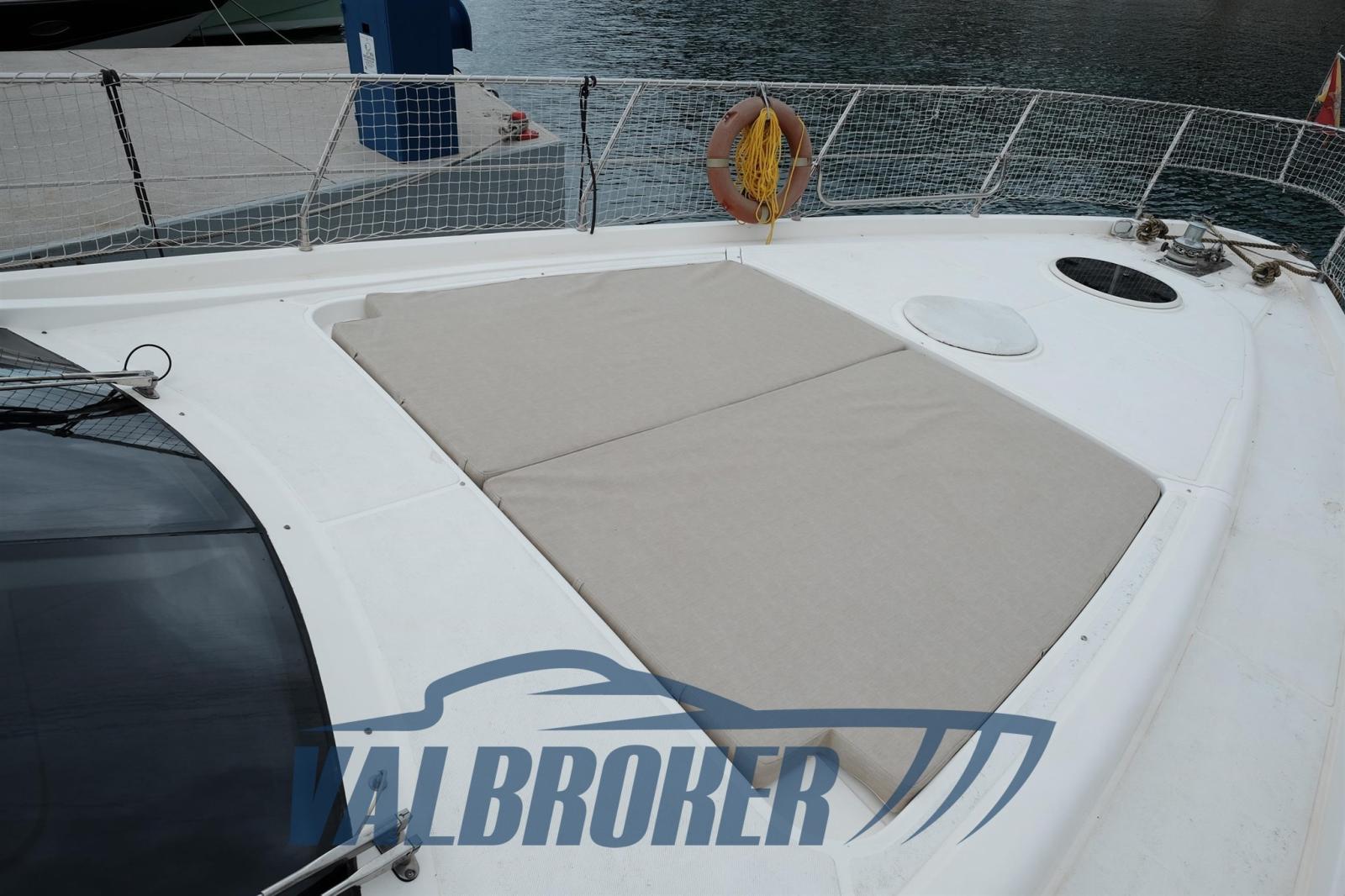 3 cabins and 3 bathrooms. Generator, wooden interior floor, teak in cockpit. Reservoir with electric winch for tender. New sheets for flybridge cover.