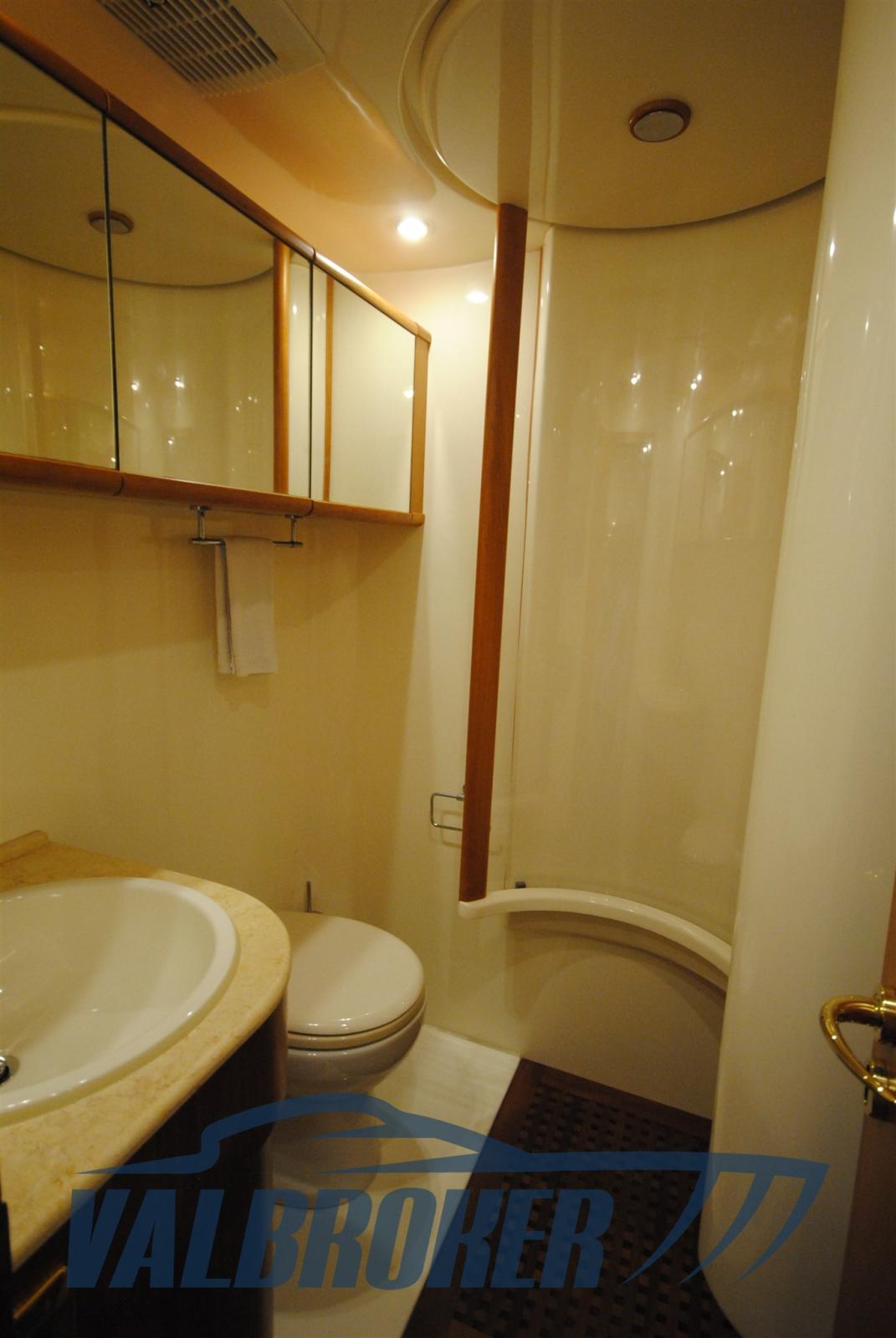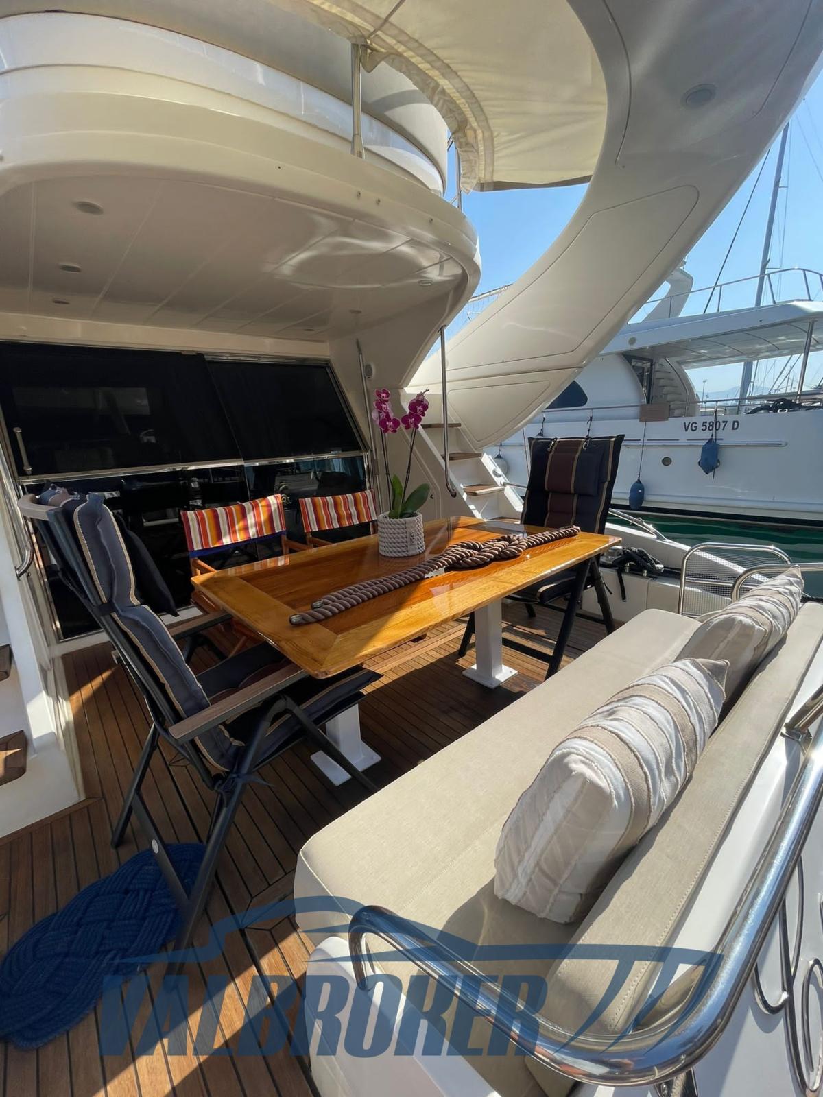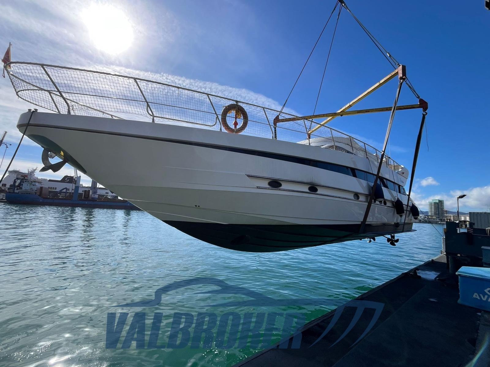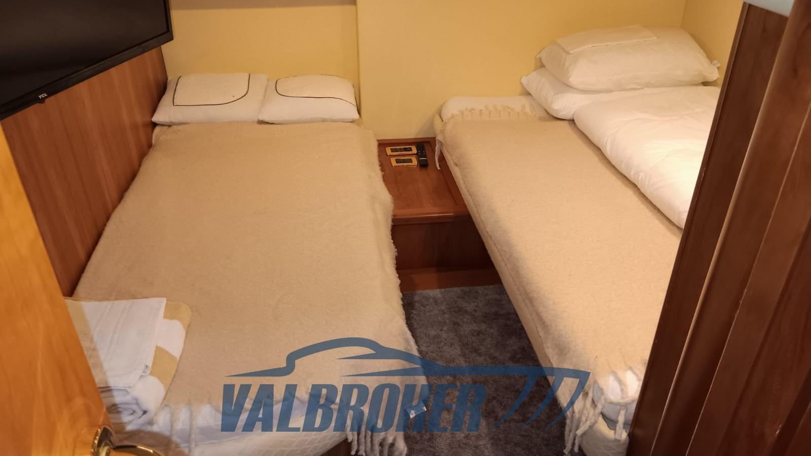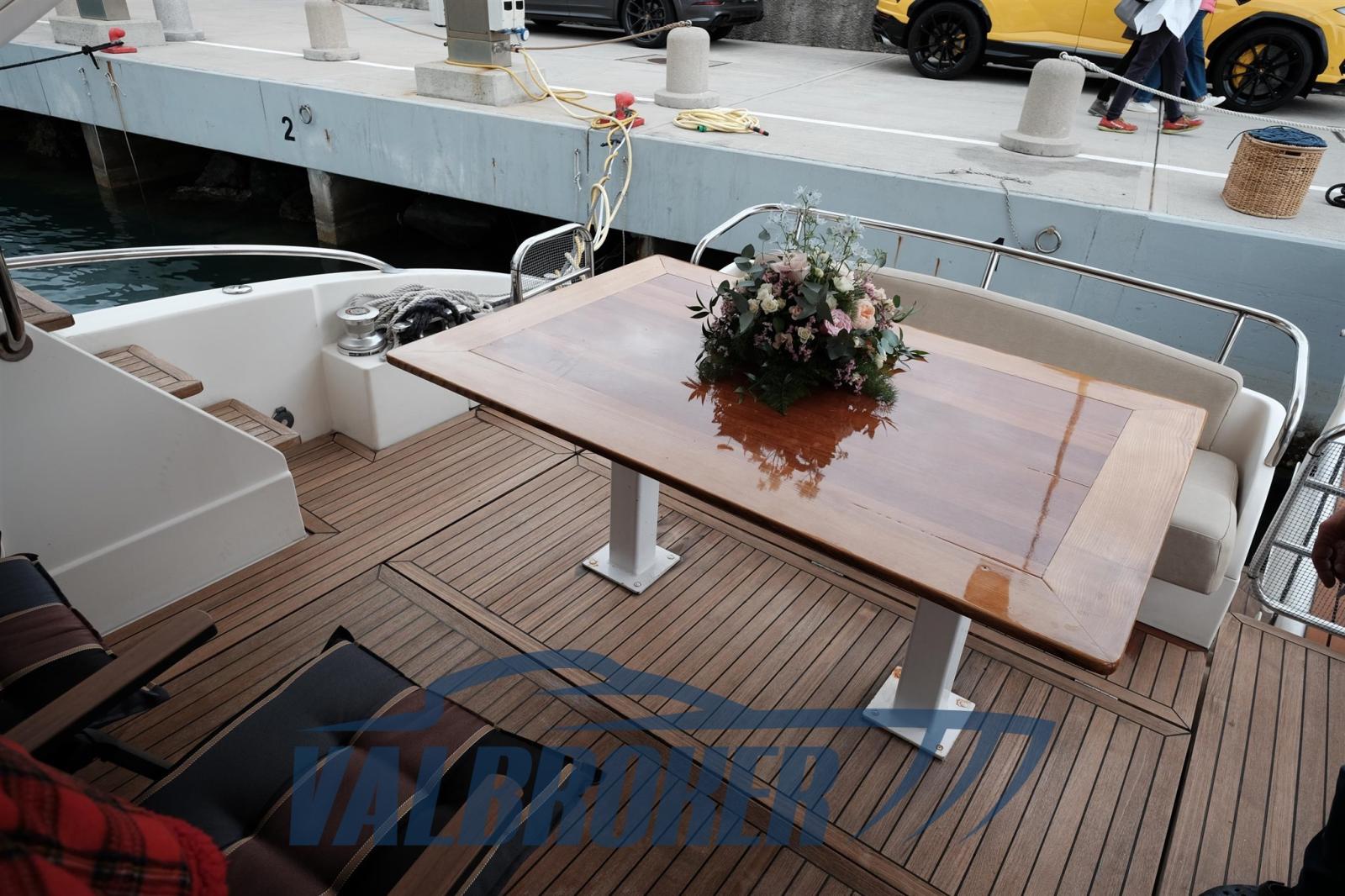 3 cabins and 3 bathrooms. Generator, wooden interior floor, teak in cockpit. Reservoir with electric winch for tender. New sheets for flybridge cover.
