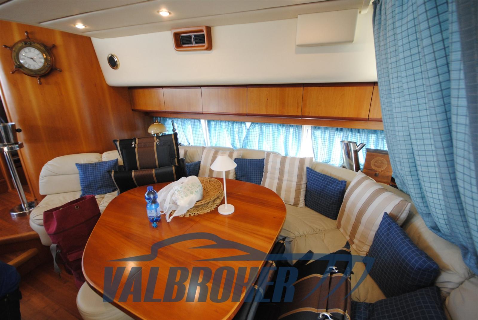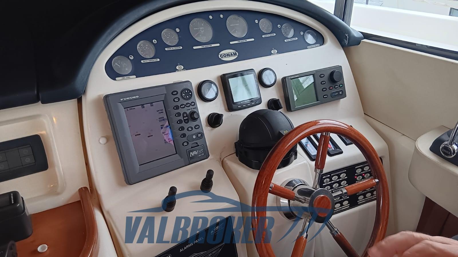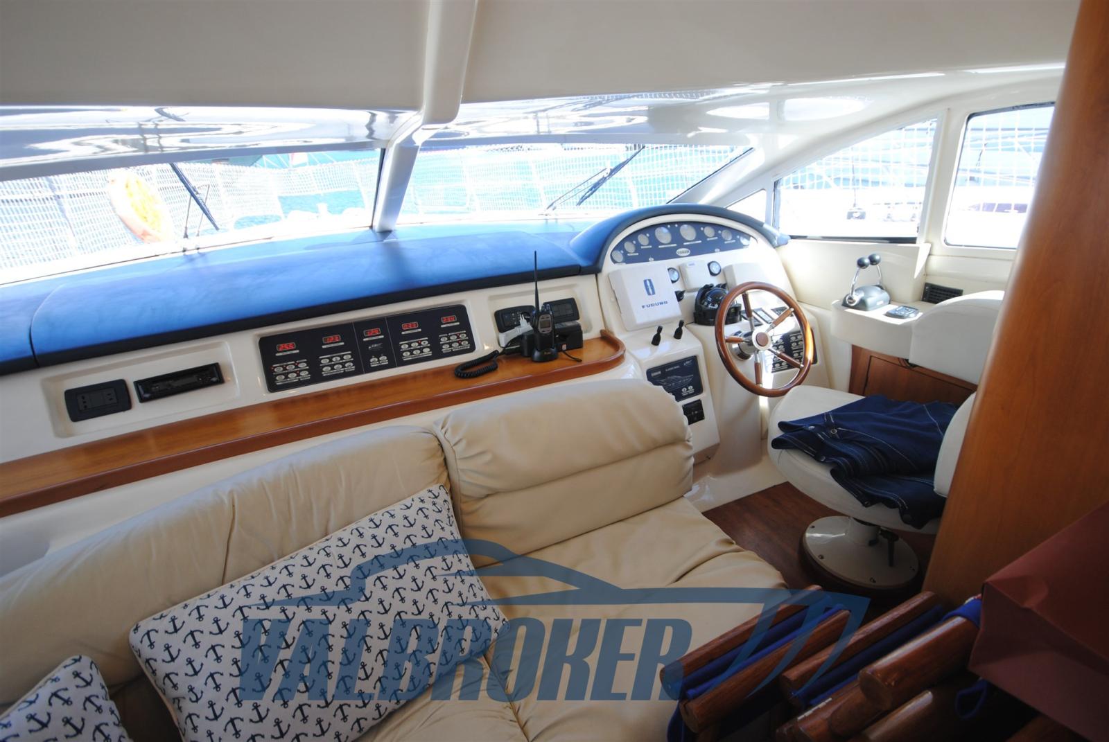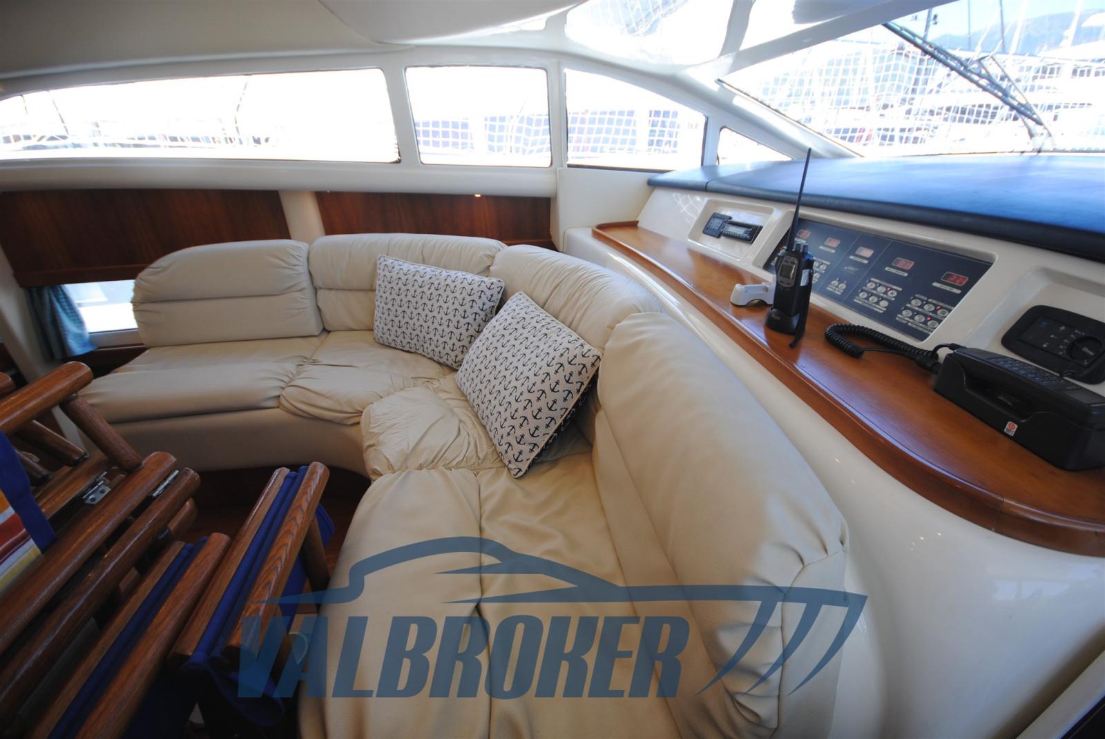 3 cabins and 3 bathrooms. Generator, wooden interior floor, teak in cockpit. Reservoir with electric winch for tender. New sheets for flybridge cover.