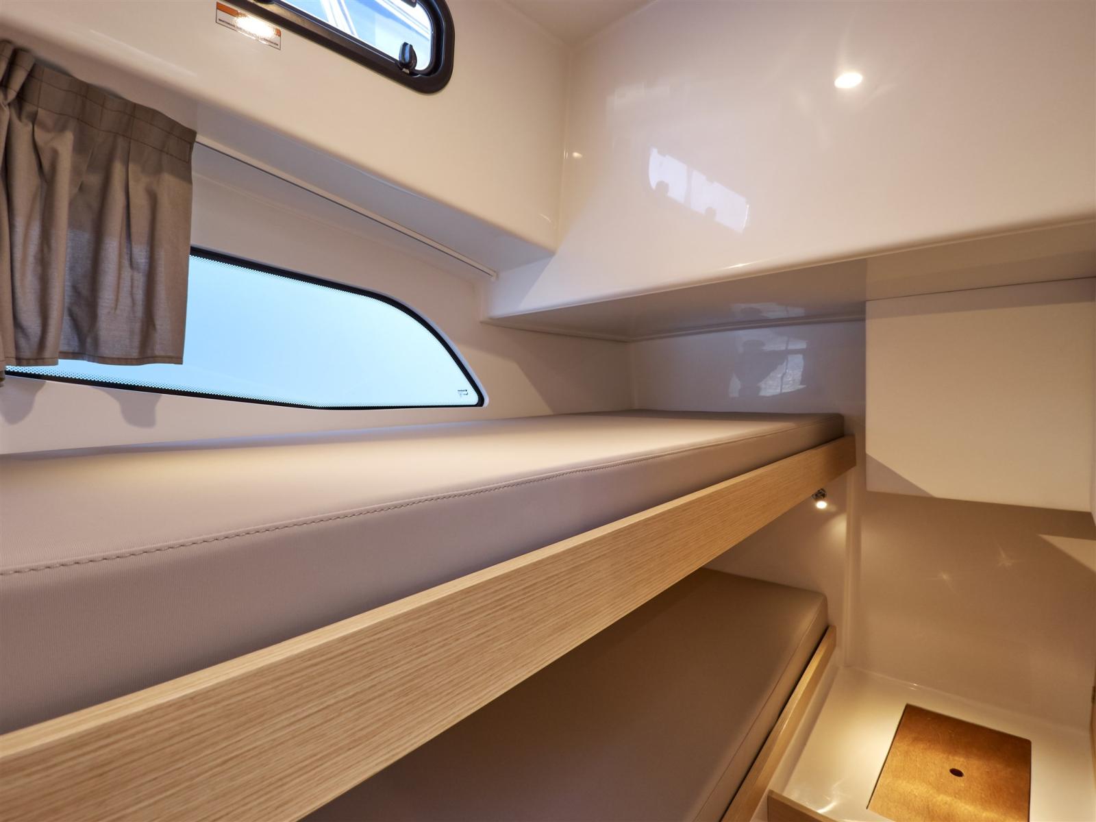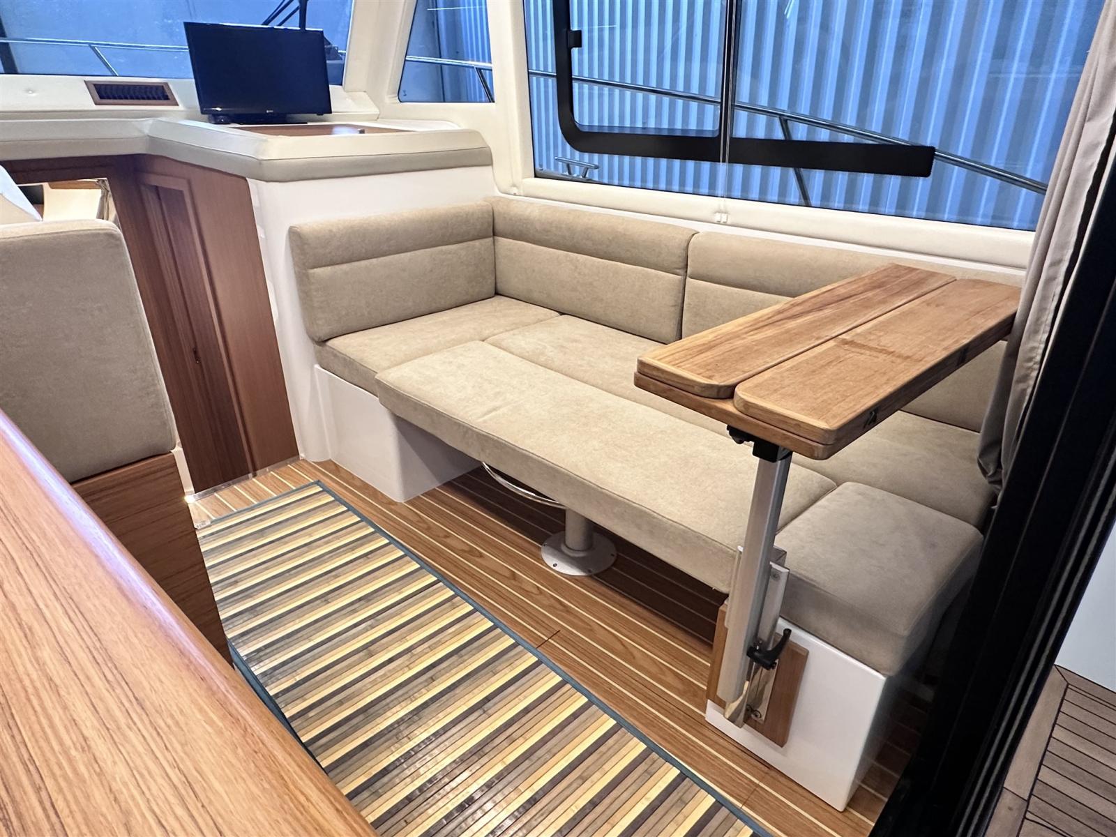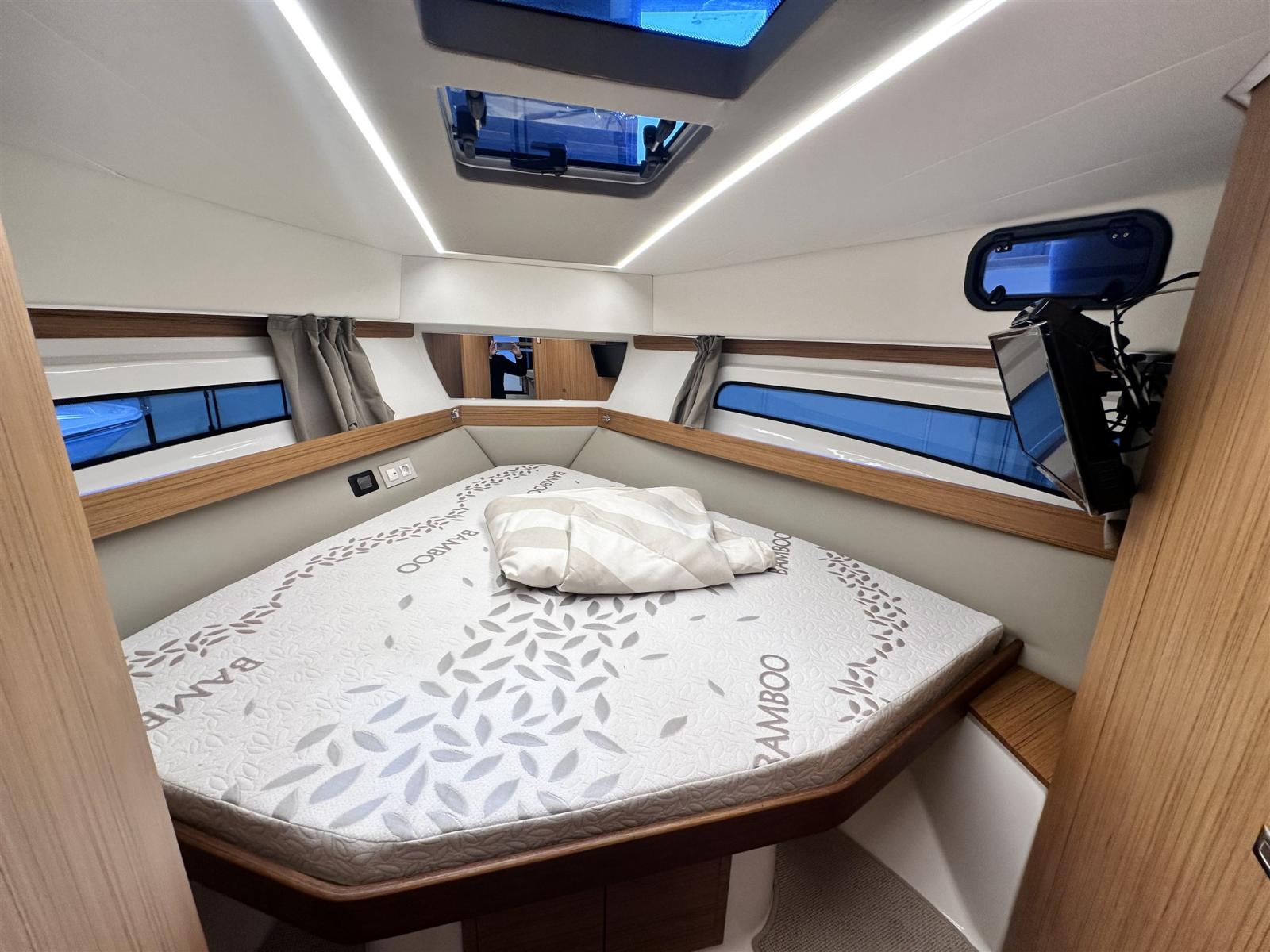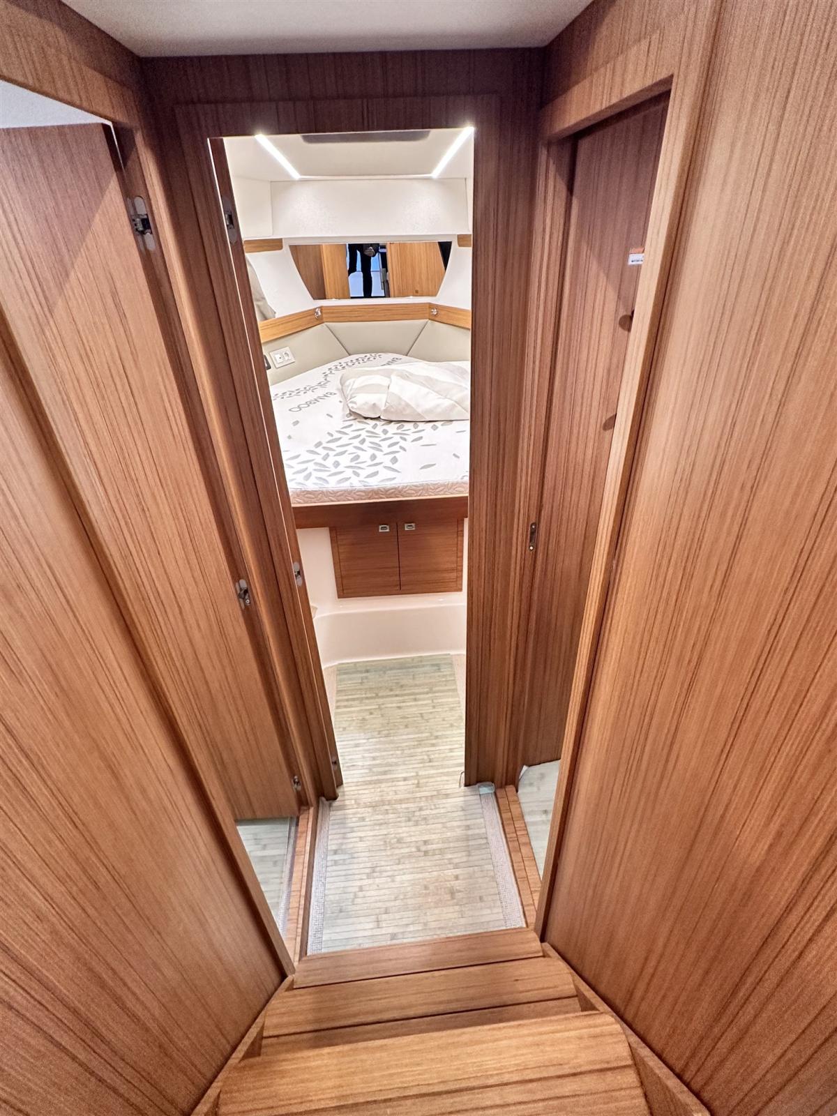 Engine Alarm, Water pressure pump, Special Colour (blu), Deck Shower, Directional Spotlight, Electric Flaps, Hard top, Fire Extinguishing System, Flaps Indicators, Platform, Automatic Bilge Pump, Manual Bilge Pump, Side door, Teak Cockpit, Shorepower connector, Voltage Rectifier, Electric Windlass, swimming ladder, Horn.
