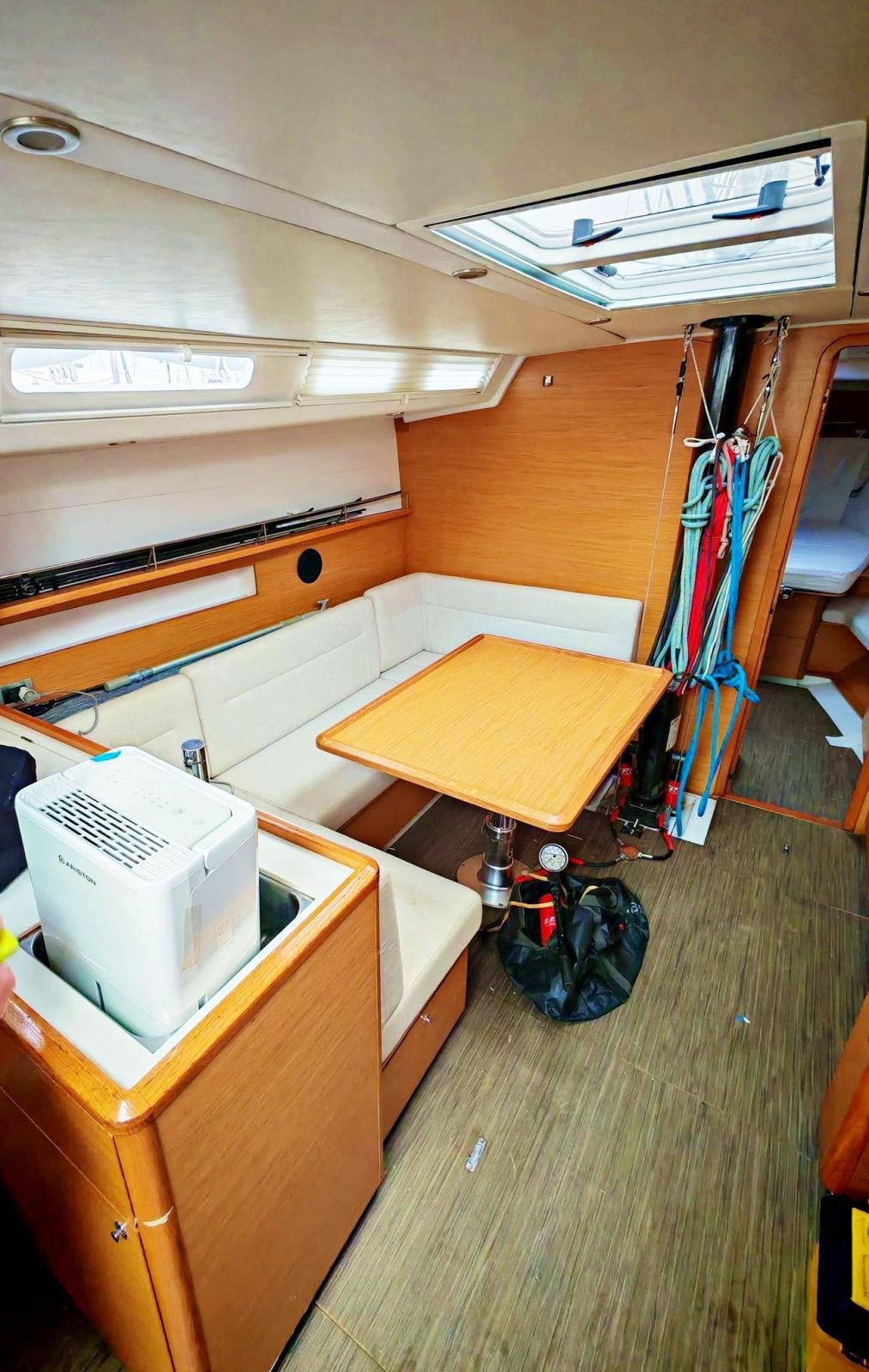 Sails: North Sails 2023 mainsail. North Sails 2018 mainsail. Dacron mainsail. DZ Sails 2025 light genoa. DZ Sails 2023 light genoa. North Sails 2023 medium genoa. One Sails 2019 medium genoa. One Sails 2019 heavy genoa. North Sails A1.5 gennaker 2023. North Sails A2 gennaker 2025. DZ Sails A4 gennaker 2025. 1 code zero.