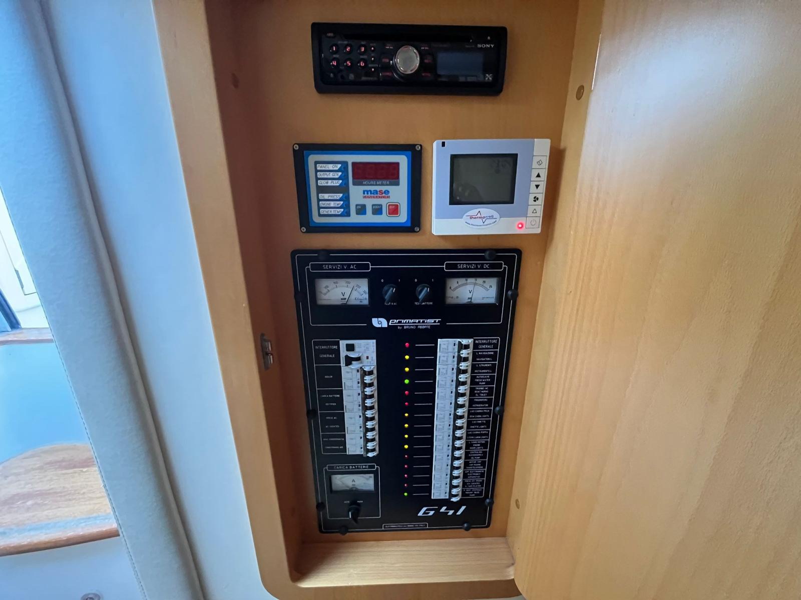 Electronic engine control, GPS (Garmin nuovo), Autopilot (Garmin nuovo), VHF Radio (Raymarine nuovo).
