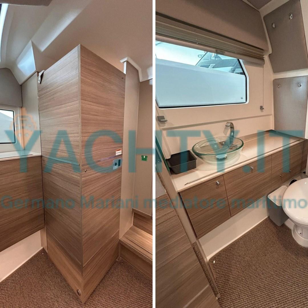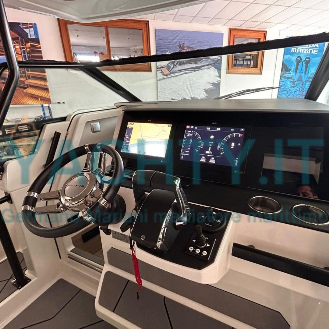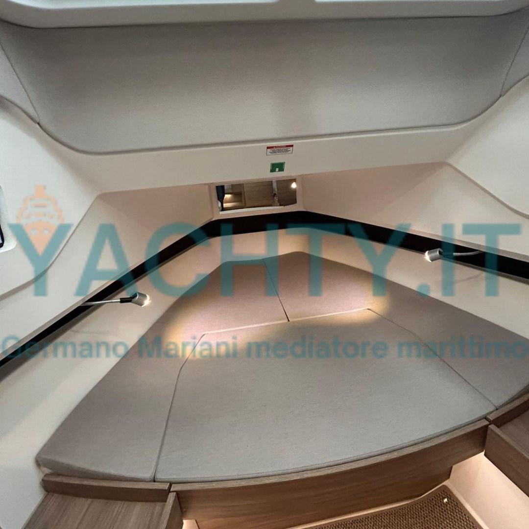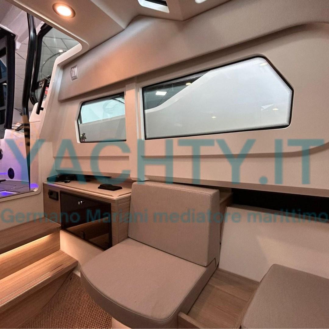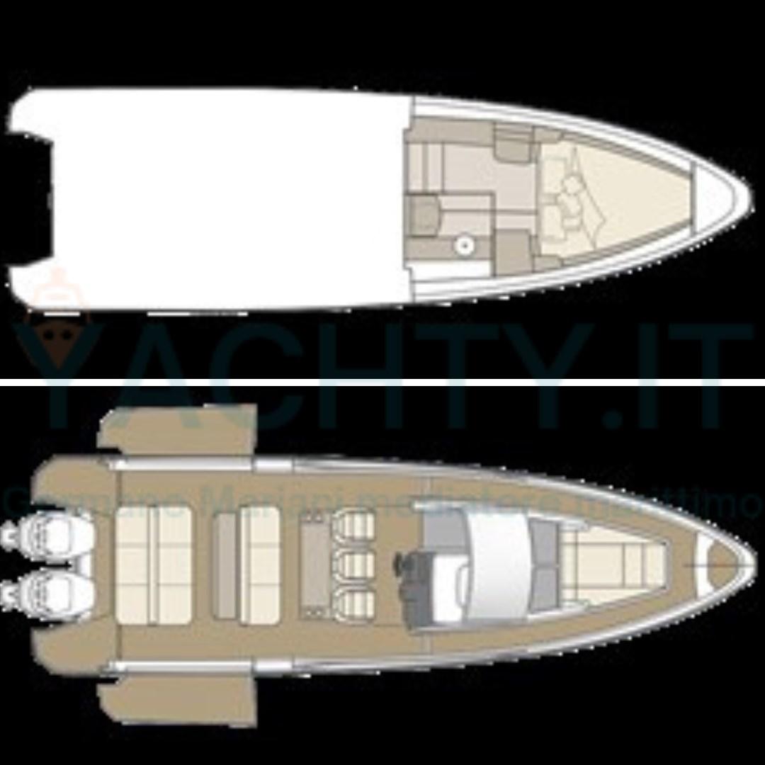 It offers a walkaround boat with large spaces and comfortable livability, an extremely high-performance hull in all sea conditions.
