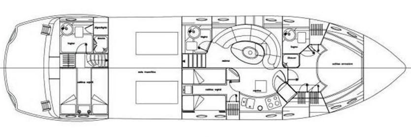 installation of new generator - replacement of service batteries - new Webasto air conditioning - installation of safe - installation of washing machine / dryer - replacement of navigation electronics (GPS / plotter, autopilot, radar, echo sounder, VHF) - overhaul of bow thruster - extraordinary overhaul of electro-hydraulic gangway - hull brought to zero - replacement of teak stern platform - balancing of axles and propellers - replacement of all awnings - renovation external cushions - installation of internal parquet - replacement of hob and fridge/freezer - overhaul of pistons and flaps control unit - replacement of LED bulbs - replacement of VHF antenna.