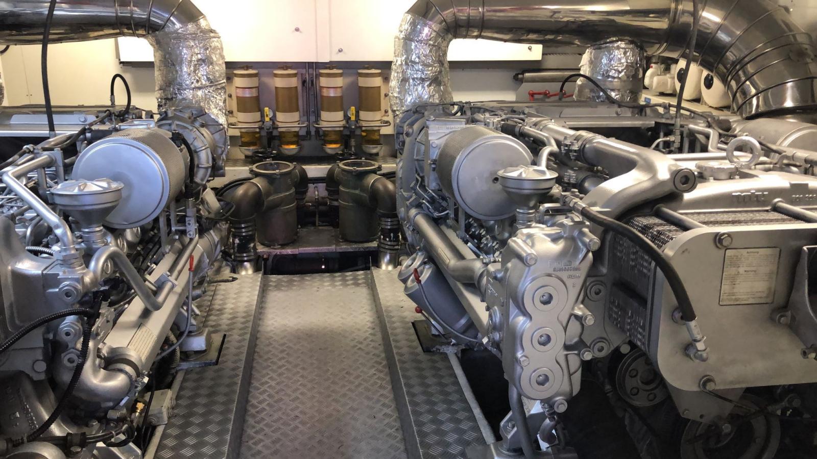 Extraordinary overhaul of the fly crane - Extraordinary overhaul of the stern platform of the Tender Lift - Extraordinary overhaul of the gangway - Extraordinary overhaul of the wheelhouse - Overhaul of the fire-fighting system - Hull brought to zero - Replacement of the seacocks - Overhaul of heat exchangers - New synthetic teak for side and bow walkways - Replacement of air conditioning pumps - Replacement of all TVs - Replacement of BBQ fly - New carpet - Replacement of the fly windshield - Replacement refrigerator motor - wine cellar installation - new engine risers - replacement of MTU instrumentation (both bridge and flybridge).