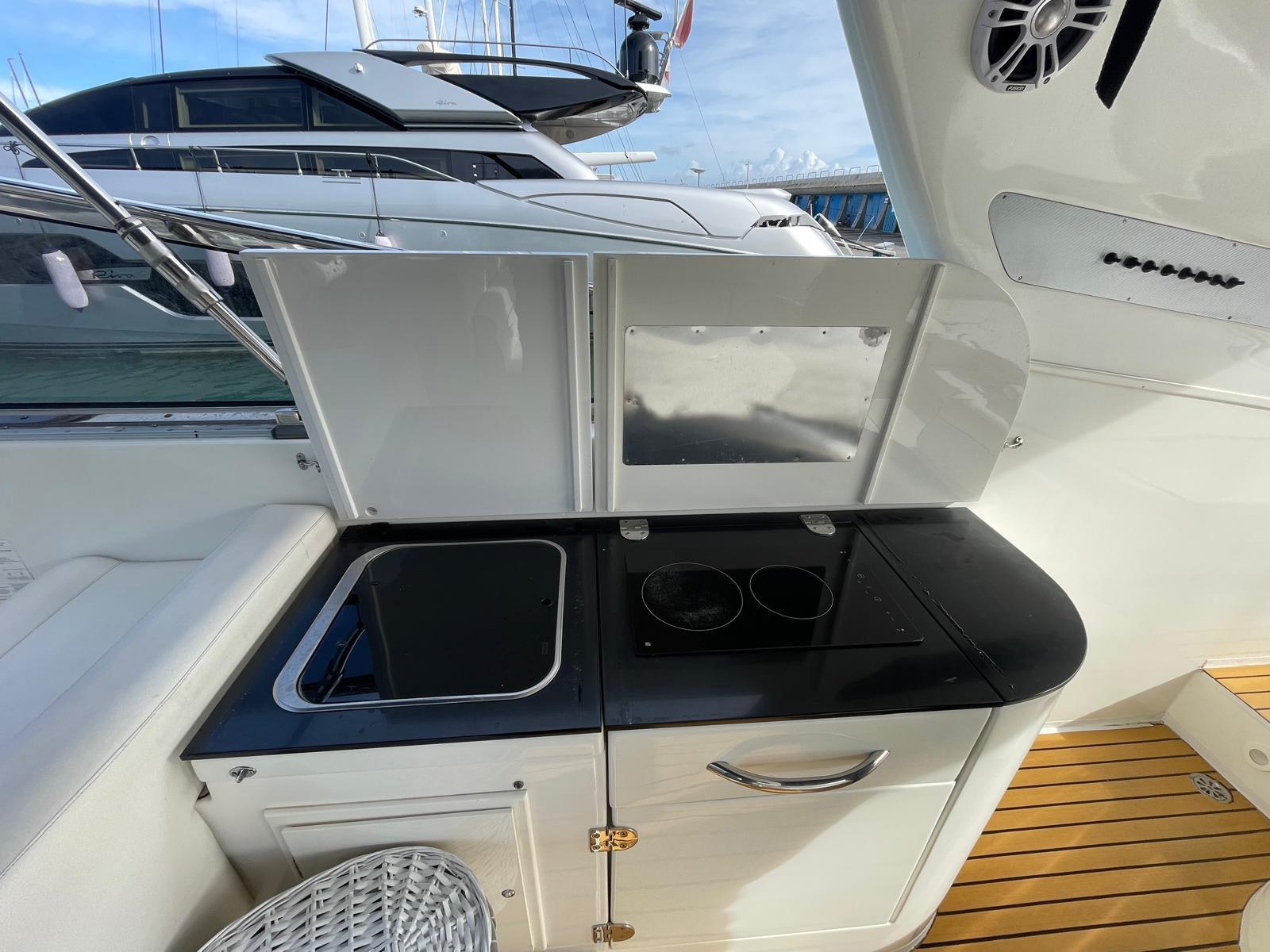 installation of new Garmin navigation instrumentation - official extraordinary maintenance of Arneson transmissions (fittings, seals, control units, etc.) - propeller balancing - installation of new Dometic air conditioning - replacement of kitchen hob - installation of combined microwave oven - replacement of cockpit fridge - extraordinary maintenance of the generator - installation of synthetic teak in cockpit and dinette - complete polishing of the hull and superstructure - installation of the system stereo Fusion - lacquering doors and furniture - overhaul plumbing, black water, electrical.