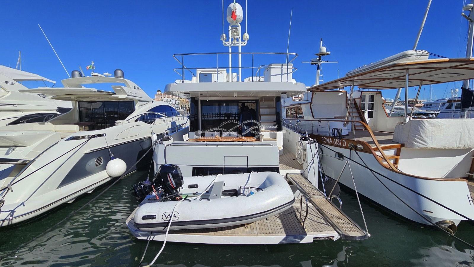 Stern platform tender lift - tender 2.80 m rigid aluminum keel with outboard 15 hp (2024) - Seakeeper gyroscopic stabilizer - electric bow and stern thrusters - SAT TV antenna - TV antenna - LCD TV - stern and engine room cameras - mobile bar on the fly with electric grill, sink and fridge - fly table convertible into sundeck - Fusion audio system - galley with four drawer fridge/freezer - combined microwave oven - 4-burner electric hob - dishwasher - washing machine - Shenker watermaker - Yacht Controller - Frigomar hot/cold air conditioning - Mase 16 kW generator - ice maker.