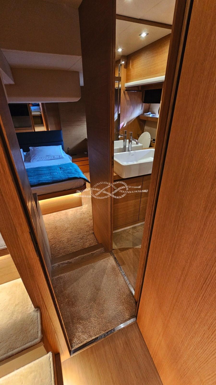 Master cabin with double bed and bathroom - VIP cabin with double bed and bathroom - guest cabin with two flat beds and bathroom.