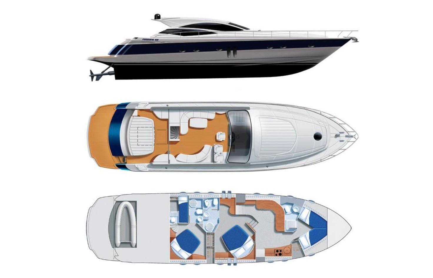 Boat in excellent condition always followed. It still has all the original Pershing plates and glasses set in stock.