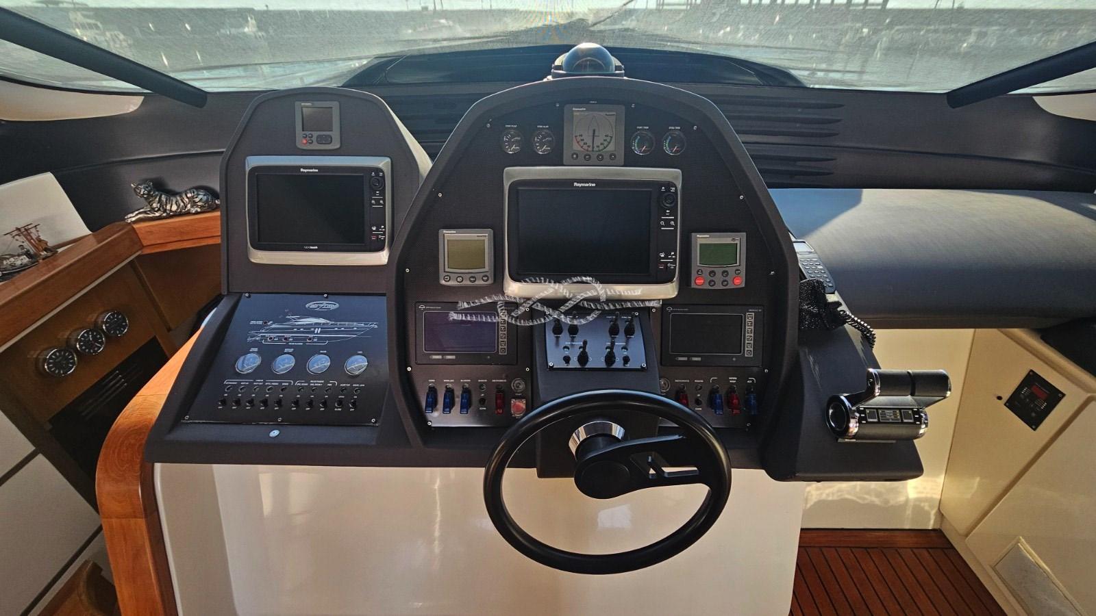 Raymarine GPS/plotter touch screen interfaced (x 2) - Raymarine double echo sounder (bow, stern) - Raymarine radar - Raymarine autopilot - multifunction display - weather station - VHF - electronic engine control panels - engine emergency panels - EPIRB.