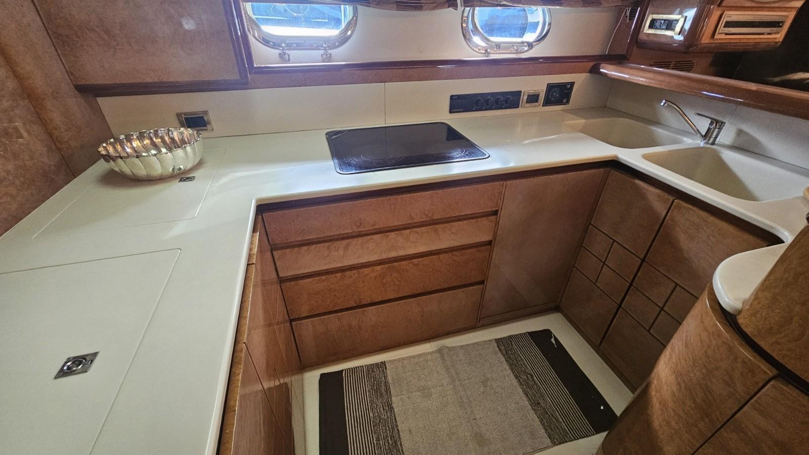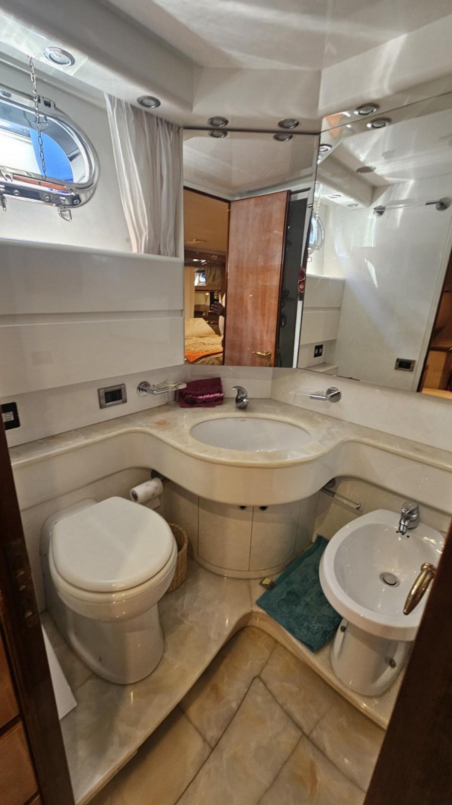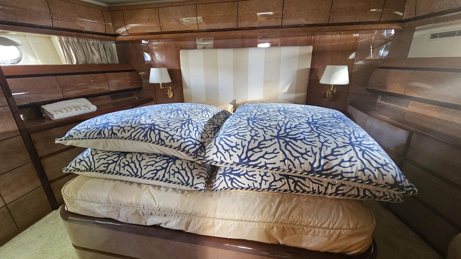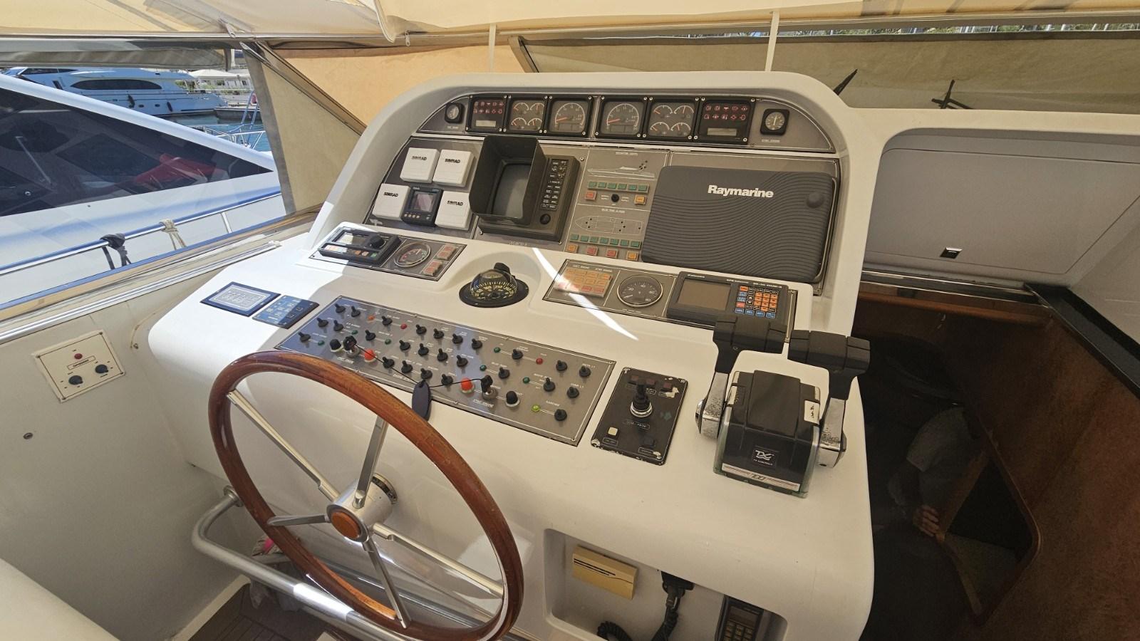 Condaria air conditioning - 2 x 15 kW Kohler generators - retractable electro-hydraulic gangway - aft tender garage - tender with outboard - hydraulic bow thruster - satellite TV antenna - LCD TV - watermaker - cockpit bar cabinet with sink and fridge - fridge - freezer - electric 4-burner hob - dishwasher - stereo - ice maker - air compressor.
