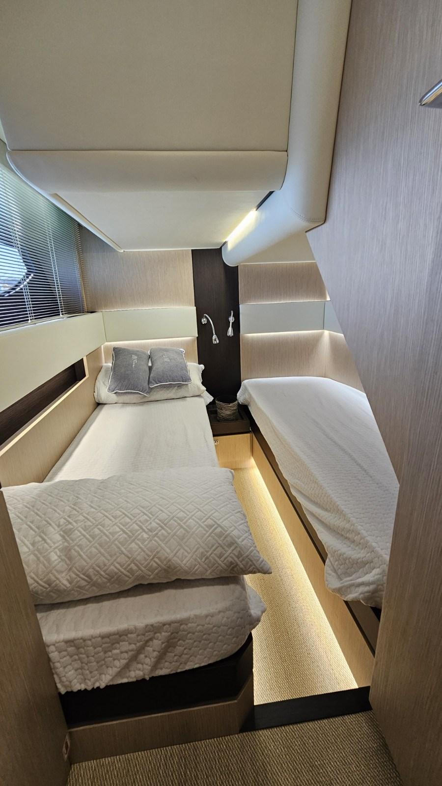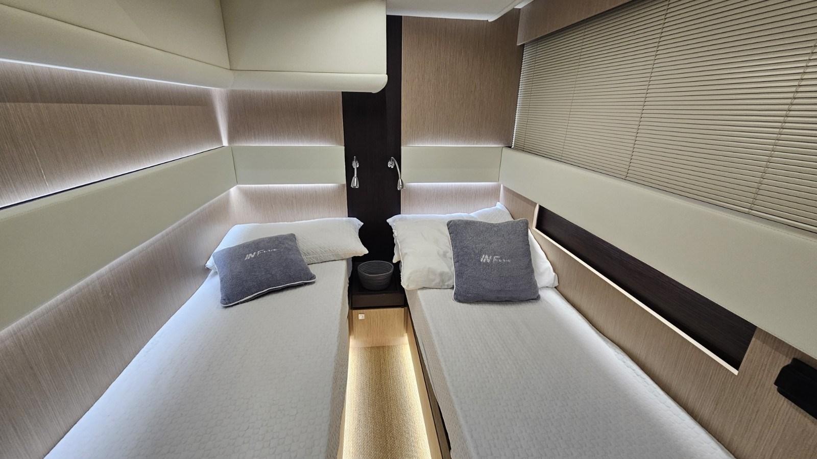 Electric bow and stern thrusters - generator - hot/cold air conditioning - EV tender with Suzuki 5 hp 4t outboard - opening hard top - cockpit bar cabinet with sink and bbq - Opacmare retractable electro-hydraulic gangway - Fusion stereo system - fridge - freezer - 4-burner electric hob - satellite TV - LCD TV.