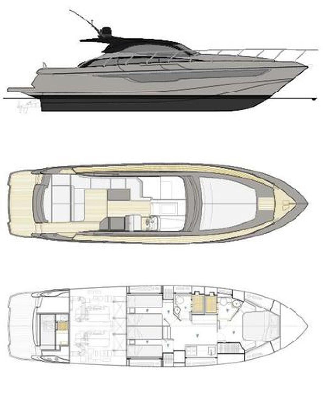 Engine Alarm, Bilge Alarm, Alternator, Water pressure pump, Special Colour, Deck Shower, Hydraulic Flaps, Hard top, Fire Extinguishing System, Flaps Indicators, Washbasin in the cockpit, Courtesy Lights, Underwater lights, Battery Monitor, Outboard engine for tender, Gangway, Platform, Teak deck, Teak Cockpit, Shorepower connector, Water harbor connector system, Electric Windlass, swimming ladder, cockpit table, Tender, guard rails with gates, Horn, Stern Winches.