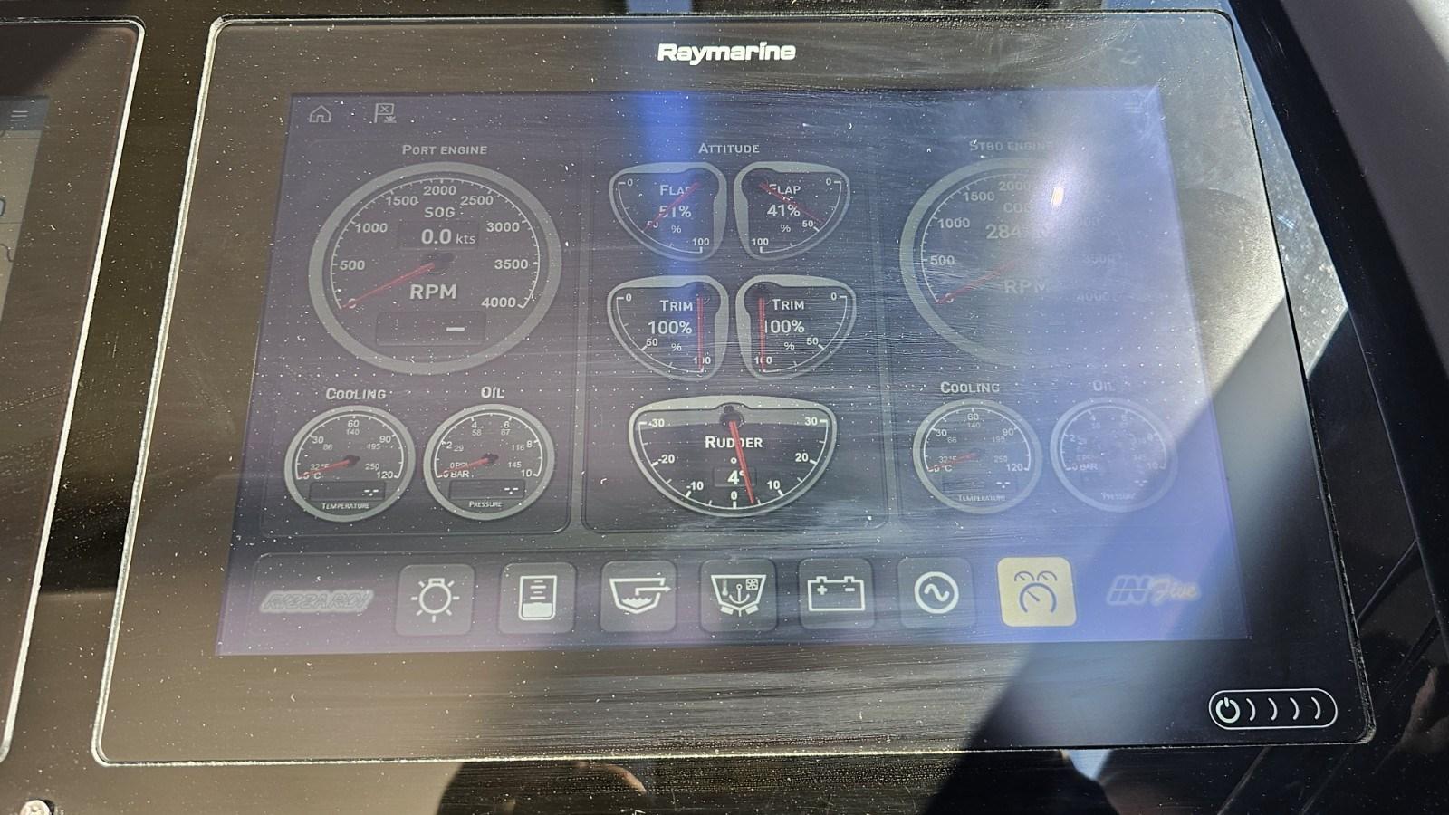 Raymarine Axiom touch GPS/plotter (2) - Raymarine radar - Raymarine autopilot - Raymarine echo sounder - Raymarine VHF - manoeuvring joystick - electronic engine control panels.