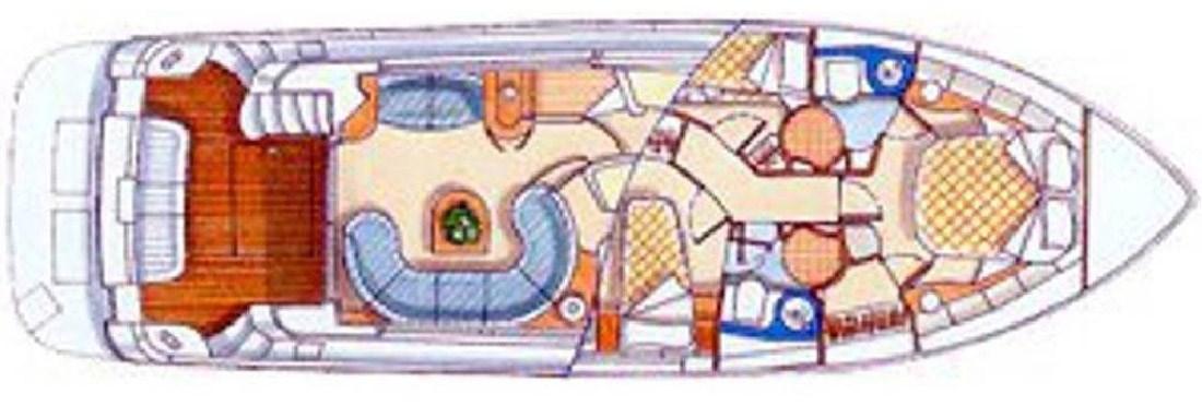 Engine Alarm, Water pressure pump, Draining System, Deck Shower, Twin Steering, Hydraulic Flaps, Flaps Indicators, Underwater lights, Outboard engine for tender, Gangway, Platform, Entry door, Teak Cockpit, Shorepower connector, Rollbar, Electric Windlass, swimming ladder, cockpit table, Tender, guard rails with gates, Horn, Stern Winches.