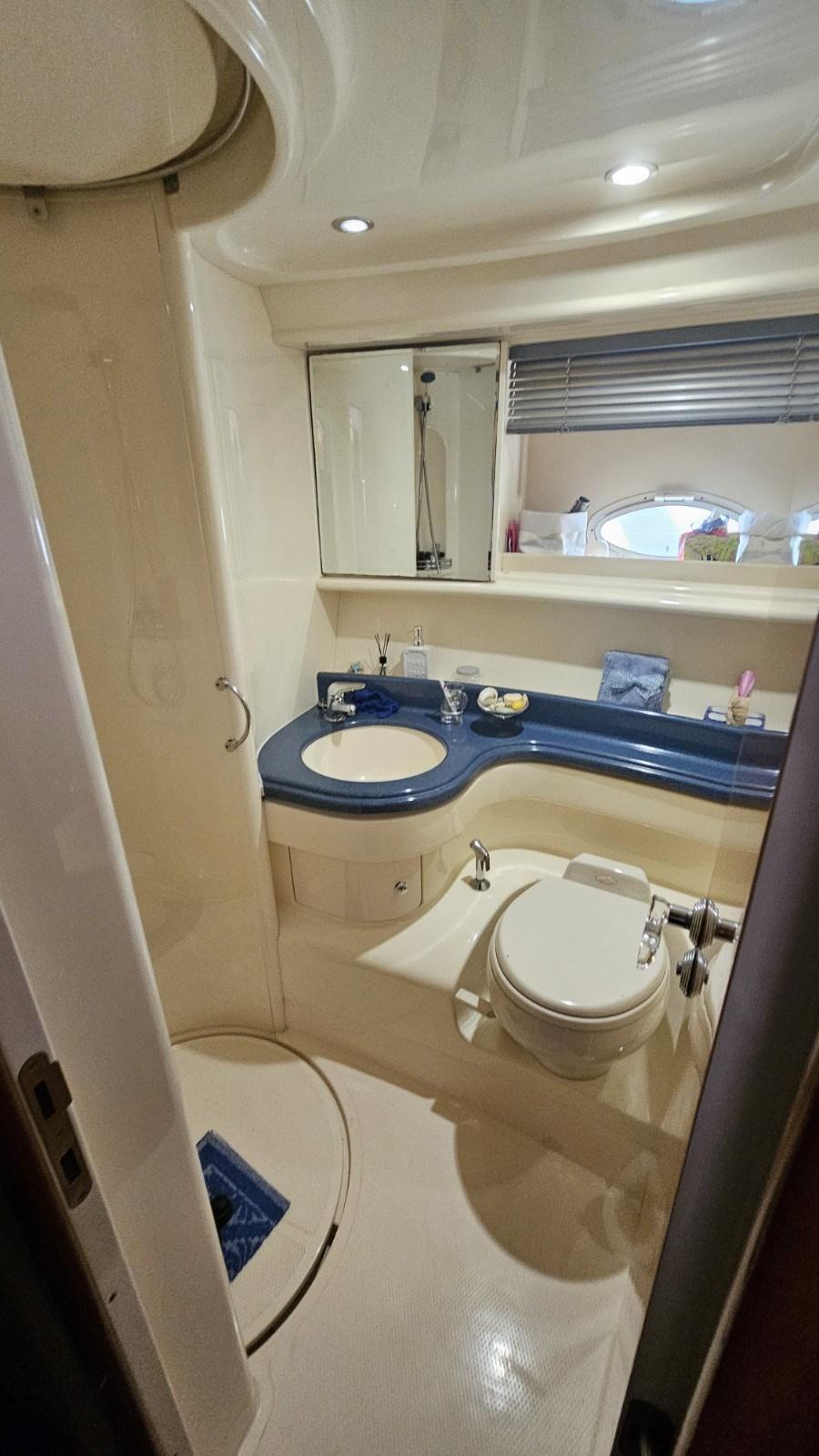 Master cabin with double bed and bathroom - VIP cabin with double bed - guest cabin with two beds on the floor - guest bathroom.