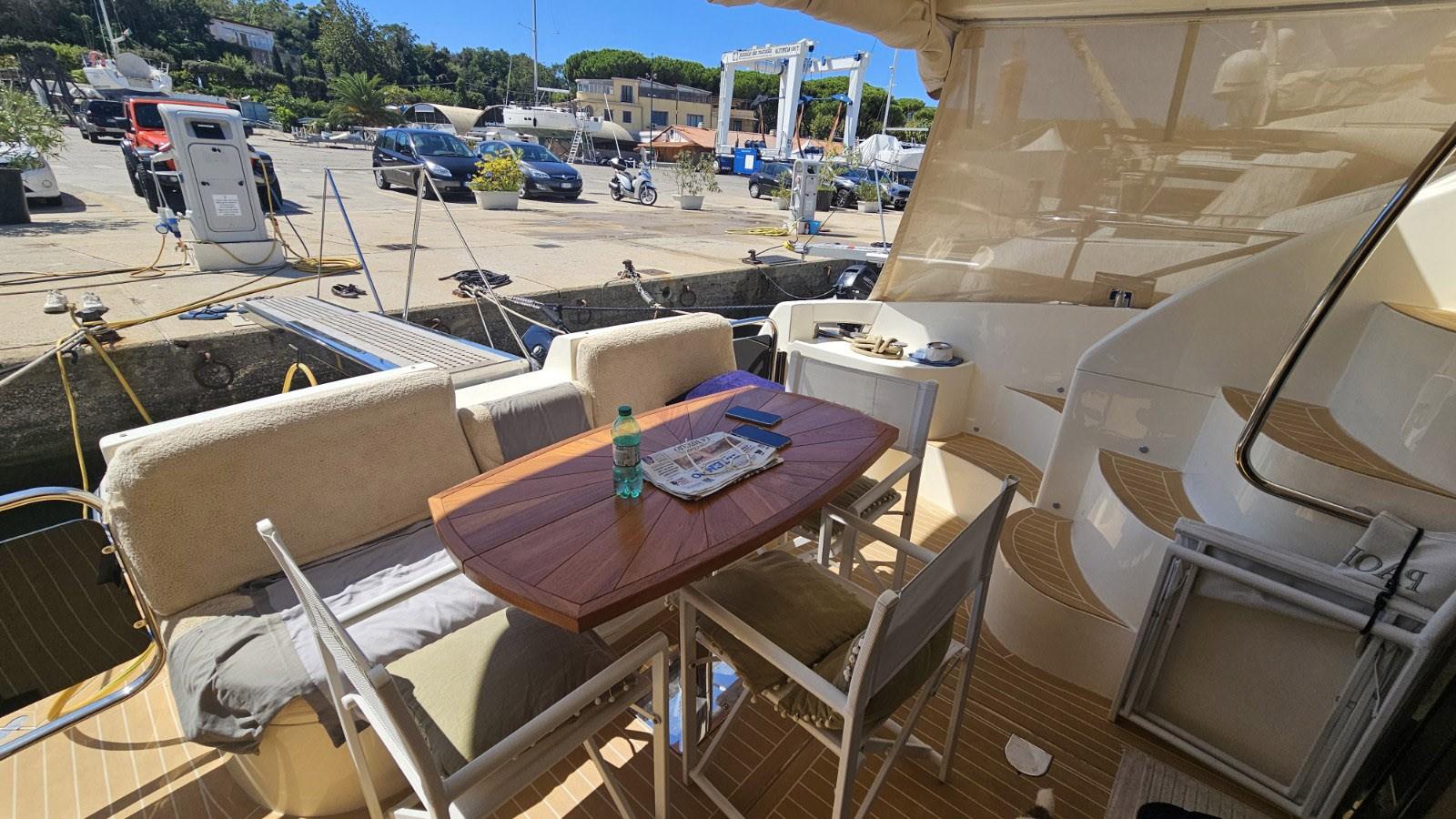 2022 works: synthetic teak cockpit - new cockpit table - new cushion sponges - new awnings, summer and winter hoods - new sofa - new interior upholstery and carpet - replacement of 3 TVs - new induction hob - new microwave - ice maker installation - new stereo - new GPS/plotter fly and VHF fly - replacement of axle bushings - new left-hand exchanger and engine exhaust - hull at zero - complete polishing.