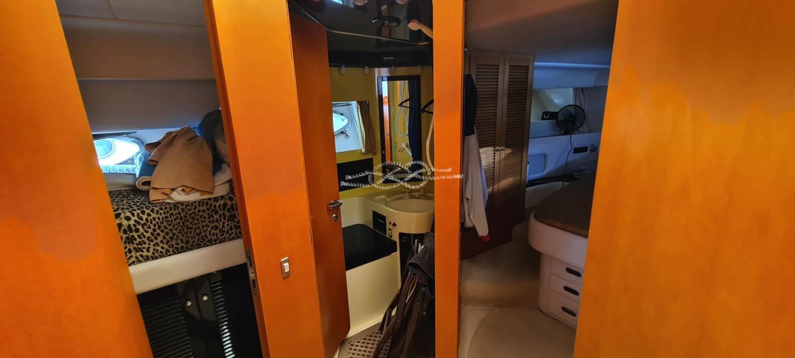 Single crew accommodation in the bow with facilities.