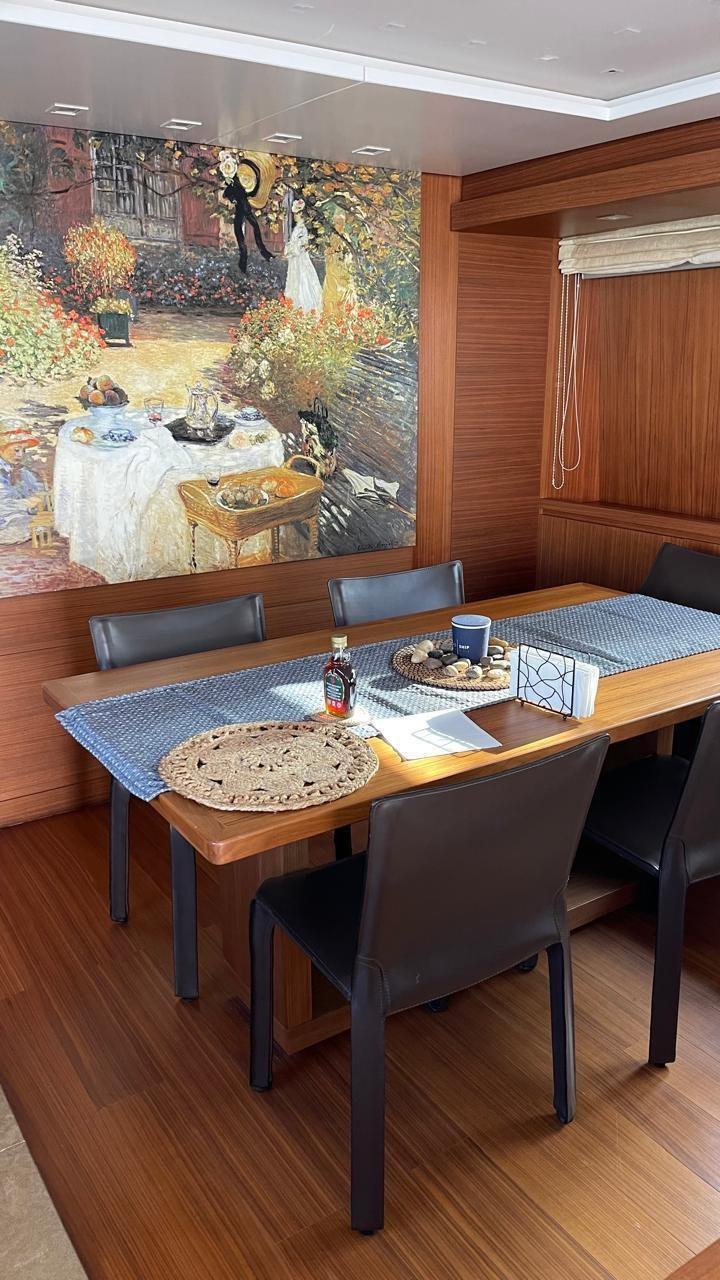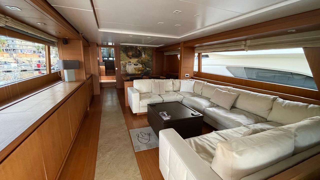 anti-osmosis treatment for live work - axle control and propeller balancing - replacement of 220V autoclave - new air conditioning sea water pump - new watermaker water pump - bow and stern thruster cutting - replacement of Lofrans stern moorings - replacement of fly awnings - new shading awning for the cockpit - new teak tables for fly and cockpit - new Bosh dryer and washing machine - complete replacement of black water pipes, grey water, fresh water - replacement of all non-return valves - replacement of all valves and seacocks - replacement of main engine exhausts and generator set exhausts - replacement of inverter - complete polishing of hull and superstructure - new sealing of all external doors and windows.