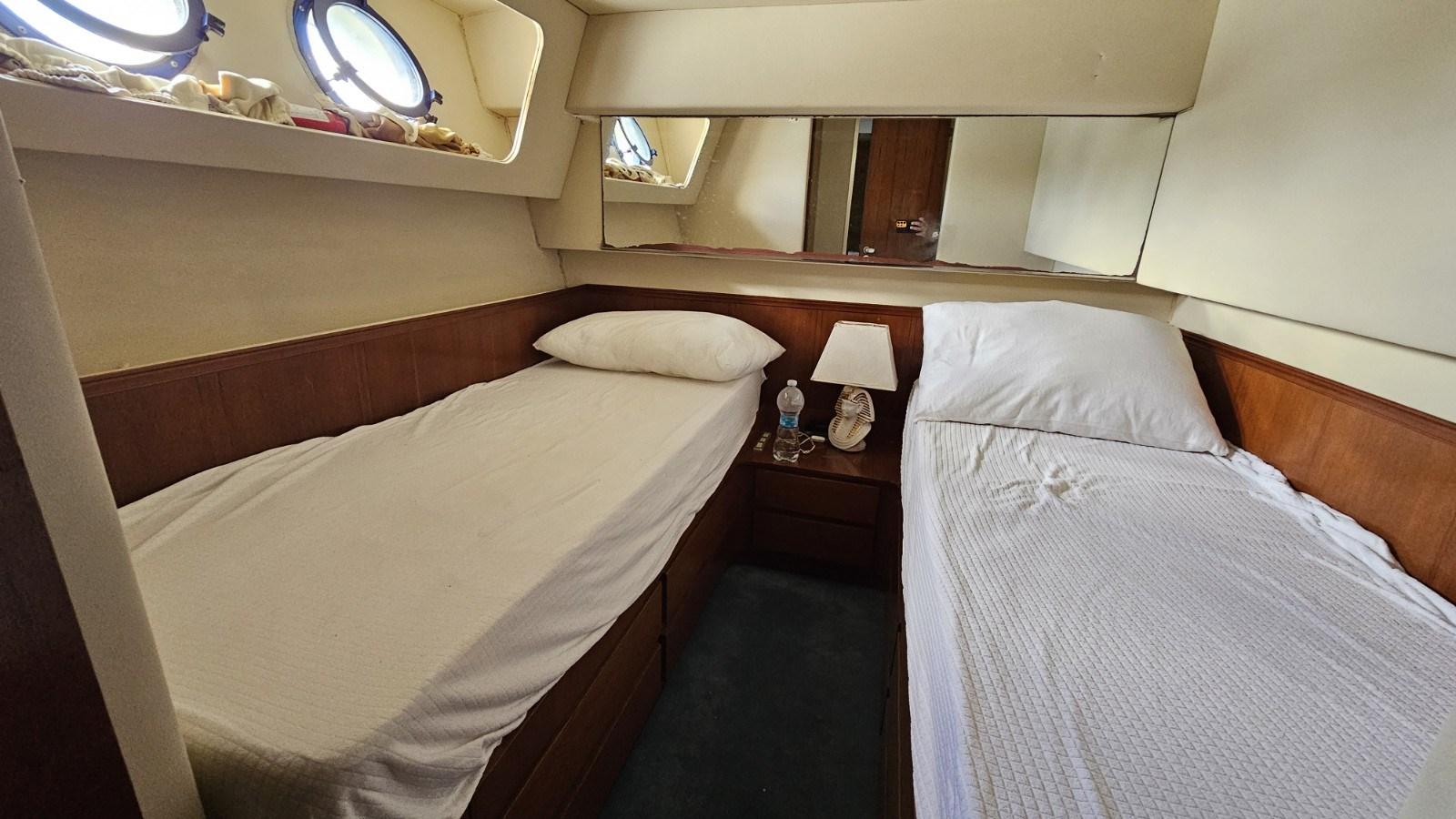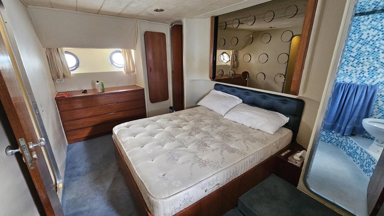 Master cabin with double bed and bathroom - cabin with two flat beds, third foldaway bed and bathroom - cabin with two flat beds, third foldaway bed and bathroom.