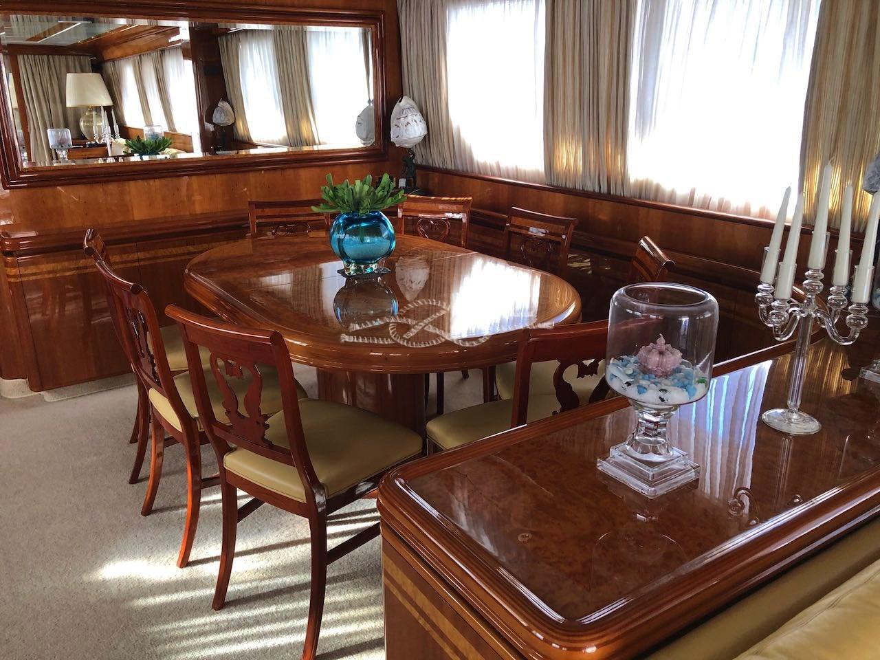 2024: overhaul of the 4 turbines - overhaul of the inverter exchangers - overhaul of the 2 autoclaves - overhaul of the 2 toilet motor pumps - overhaul of the bow thruster - overhaul of the bilge system - replacement of the barboten of the two anchor winches - replacement of the cold rooms in the saloon and on the flying bridge - replacement of windshield glass on the flybridge - application of a second camera in the engine room - implementation of underwater lights - replacement of the pipes for all toilets.