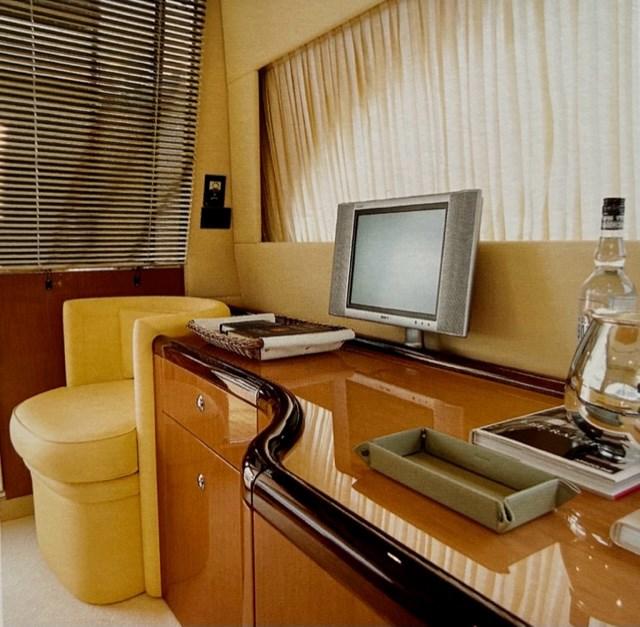 Engine Alarm, Bilge Alarm, Water pressure pump, Teak Side Decks, Deck Shower, Hydraulic Flaps, Fire Extinguishing System, Courtesy Lights, Gangway, Platform, Entry door, Teak Cockpit, Shorepower connector, Water harbor connector system, Rollbar, Electric Windlass, swimming ladder, cockpit table, Tender, Horn, Stern Winches.