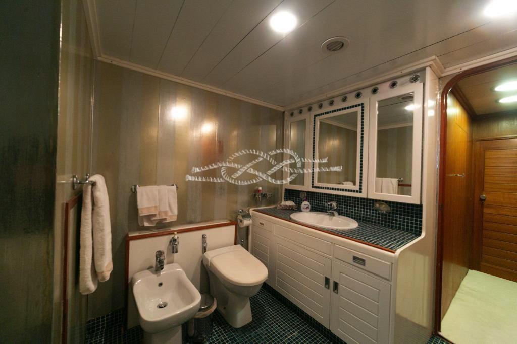 Master cabin on the main deck with double bed and bathroom - VIP cabin with two beds and bathroom - guest cabin with two flat beds and bathroom - guest cabin with two flat beds and bathroom.