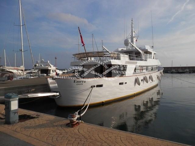 Central air conditioning - Tecnomarine watermaker 500 L/h - Alfa Laval 900 L/h diesel separator - 60 kW hydraulic bow thruster - induction hob - oven - steel fridge freezer - two Miele washing machines - two Miele dryers - SAT TV antenna - Technics stereo system - Novamarine tender 5.30 m with Volvo Penta 130 Hp inboard - Novamarine tender 4.60 m with Yamaha 60 Hp outboard - Epirb - Hamman black water treatment system - Alfa Laval diesel purifier system - SAT and Wi-Fi data - two 150 kW Caterpillar generators (3569 - 3462 hours).
