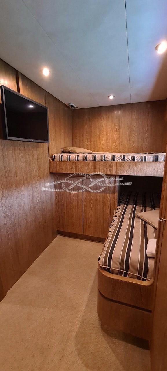 Single crew cabin forward with facilities - crew cabin two beds aft with bathroom.