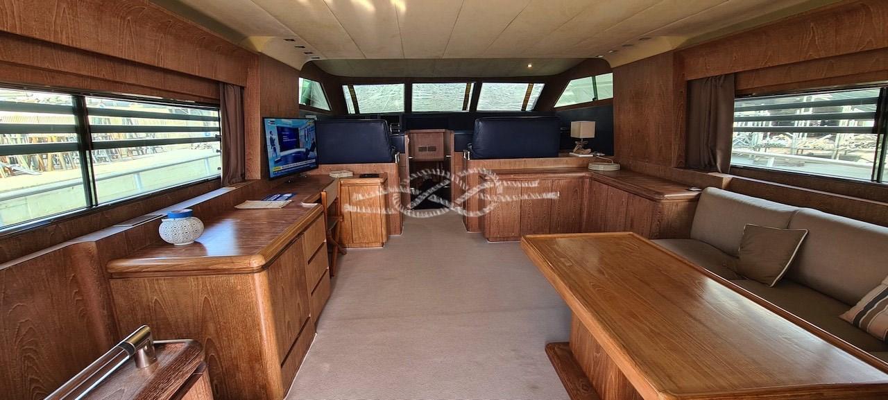 Engine Alarm, Bilge Alarm, Water pressure pump, Teak Side Decks, Deck Shower, Twin Steering, Hydraulic Flaps, Flaps Indicators, Anchor Chain Washdown, Gangway, Platform, Entry door, Shorepower connector, Water harbor connector system, Electric Windlass, swimming ladder, cockpit table, Tender, Horn, Stern Winches.