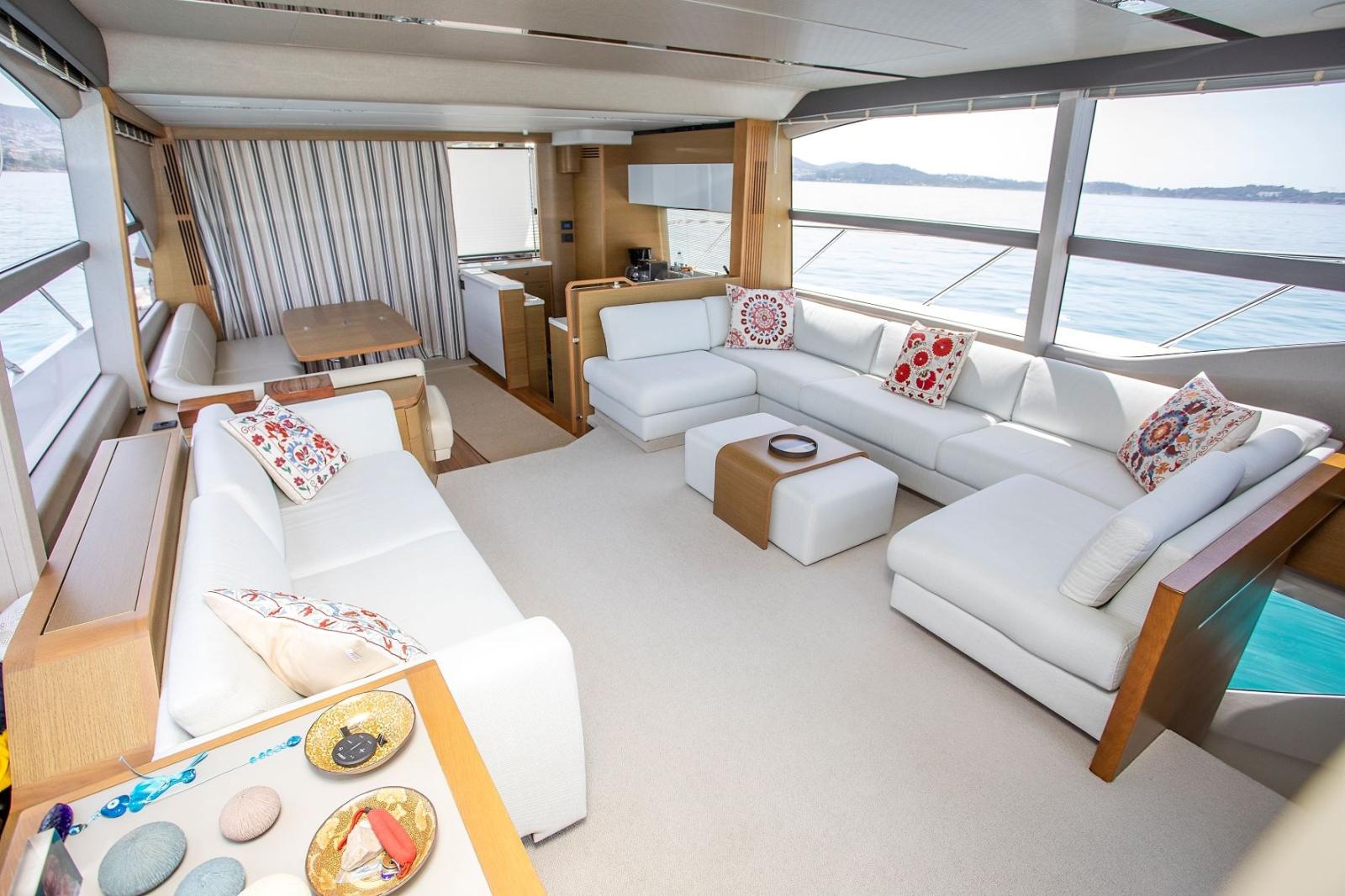 Stern thruster - bow thruster - air conditioning - galley - oven - microwave oven - refrigerator - washing machine - dryer - watermaker - grill - cockpit table - flybridge table - two Onan 19 and 11 kW generators - double helm station - third stern control station - stabilizer fins (Sleipner VF800) - hydraulic gangway - hydraulic stern bridge - mosquito nets - LCD TV - SAT TV antenna.