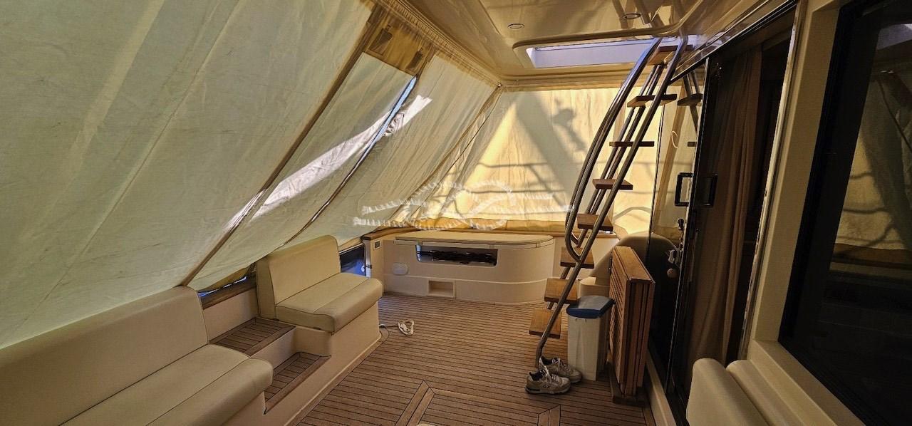 Fume/Gas Detector, Engine Alarm, Bilge Alarm, Water pressure pump, 6 Batteries, Teak Side Decks, Deck Shower, Hydraulic Flaps, Flaps Indicators, Anchor Chain Washdown, Gangway, Platform, Automatic Bilge Pump, Manual Bilge Pump, Teak Cockpit, Shorepower connector, Water harbor connector system, cockpit table, Tender, Horn, Stern Winches.