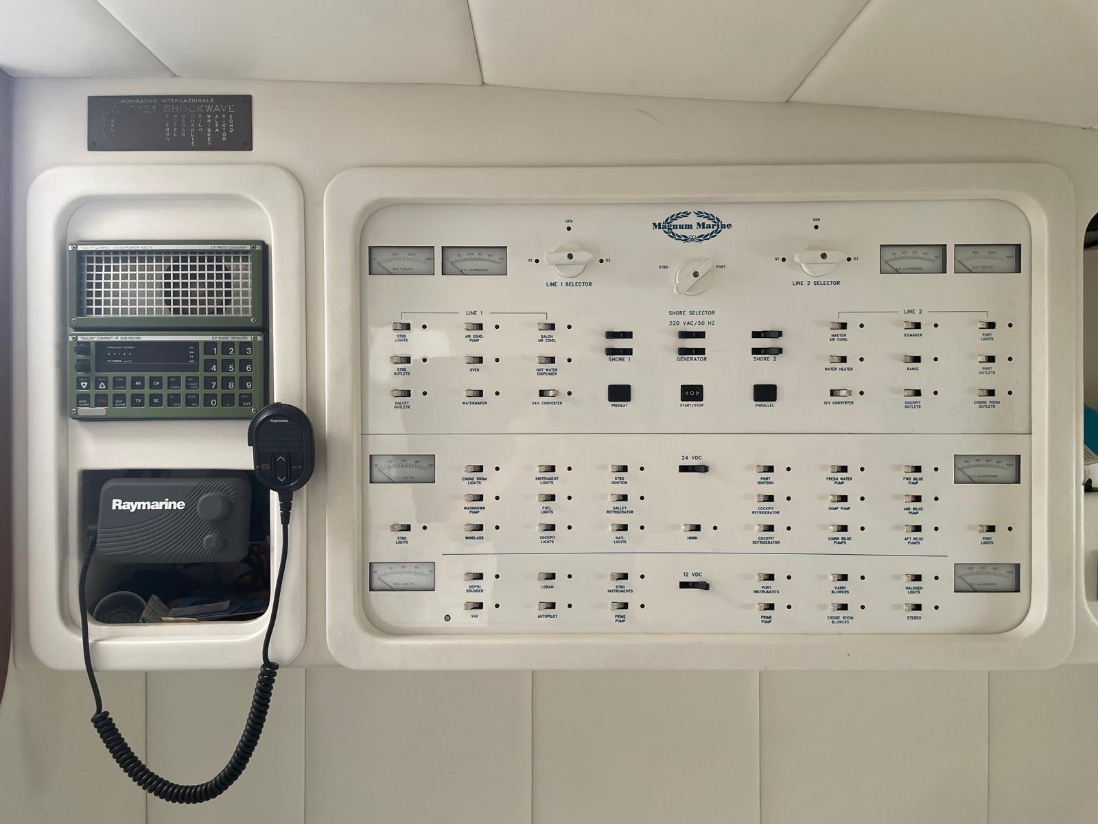 Bow thruster - four-burner electric hob - wet bar in the cockpit with sink, electric hob and steel fridge - Glomex TV antenna - LCD TV - Onan 12 kW generator set - Tecma toilet - retractable stern mooring winch - generator.