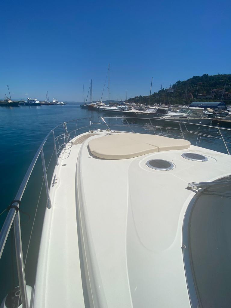 Air conditioning - bow thruster - hydraulic gangway - Kohler generator 7.5 kW - complete sun cushions - awning - kitchenette with ceramic hob - microwave oven - TV system - stereo system - outdoor cabinet with ceramic hob and fridge - swim ladder - garage for tender.