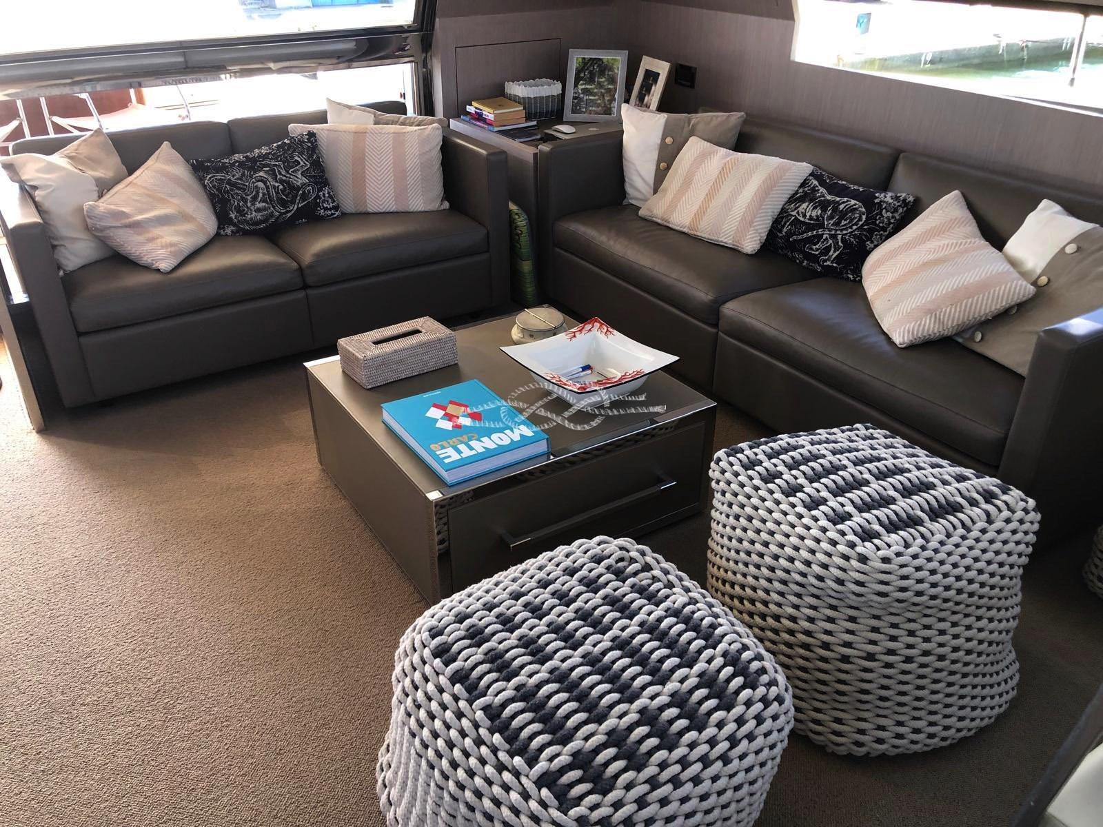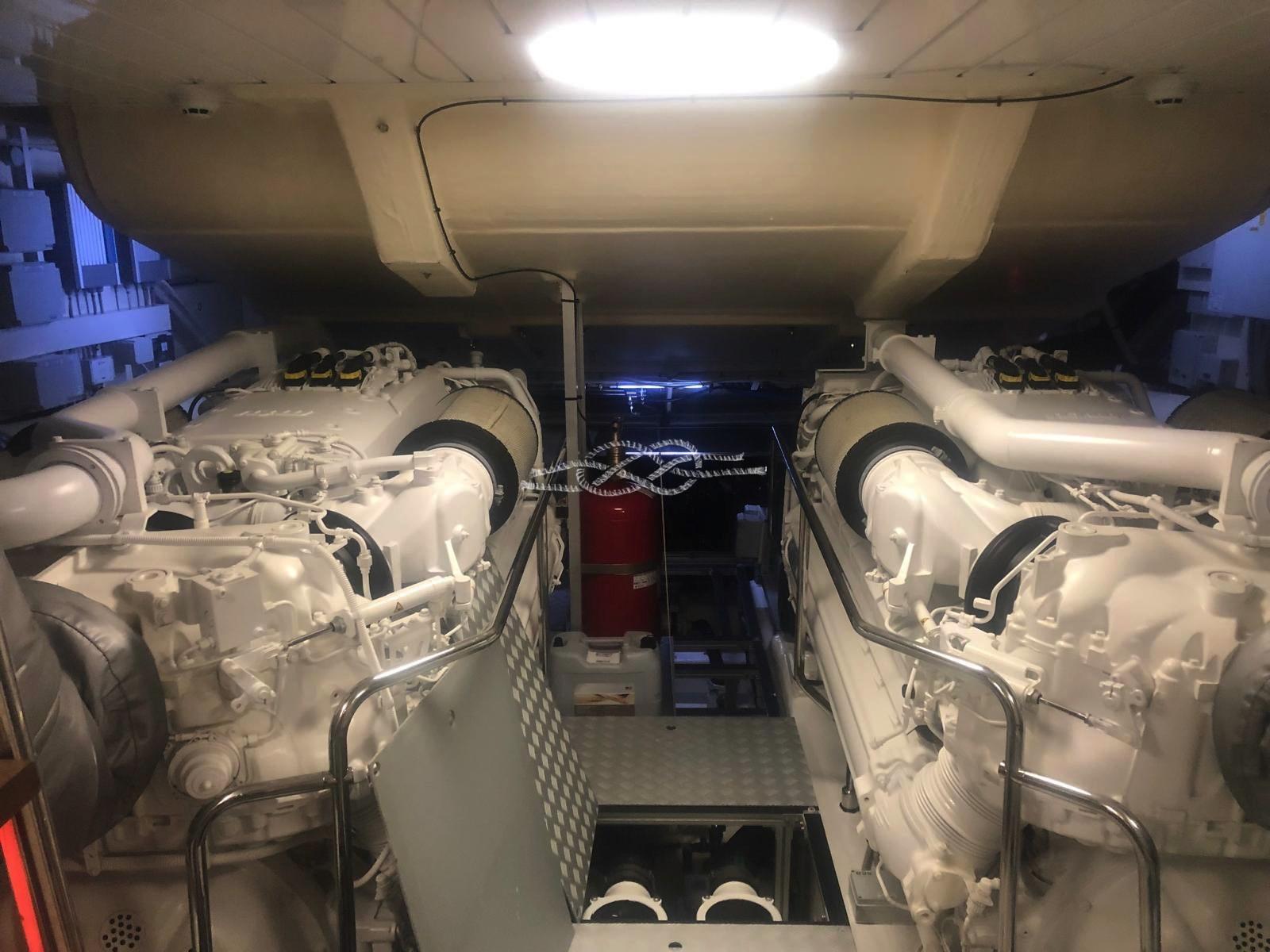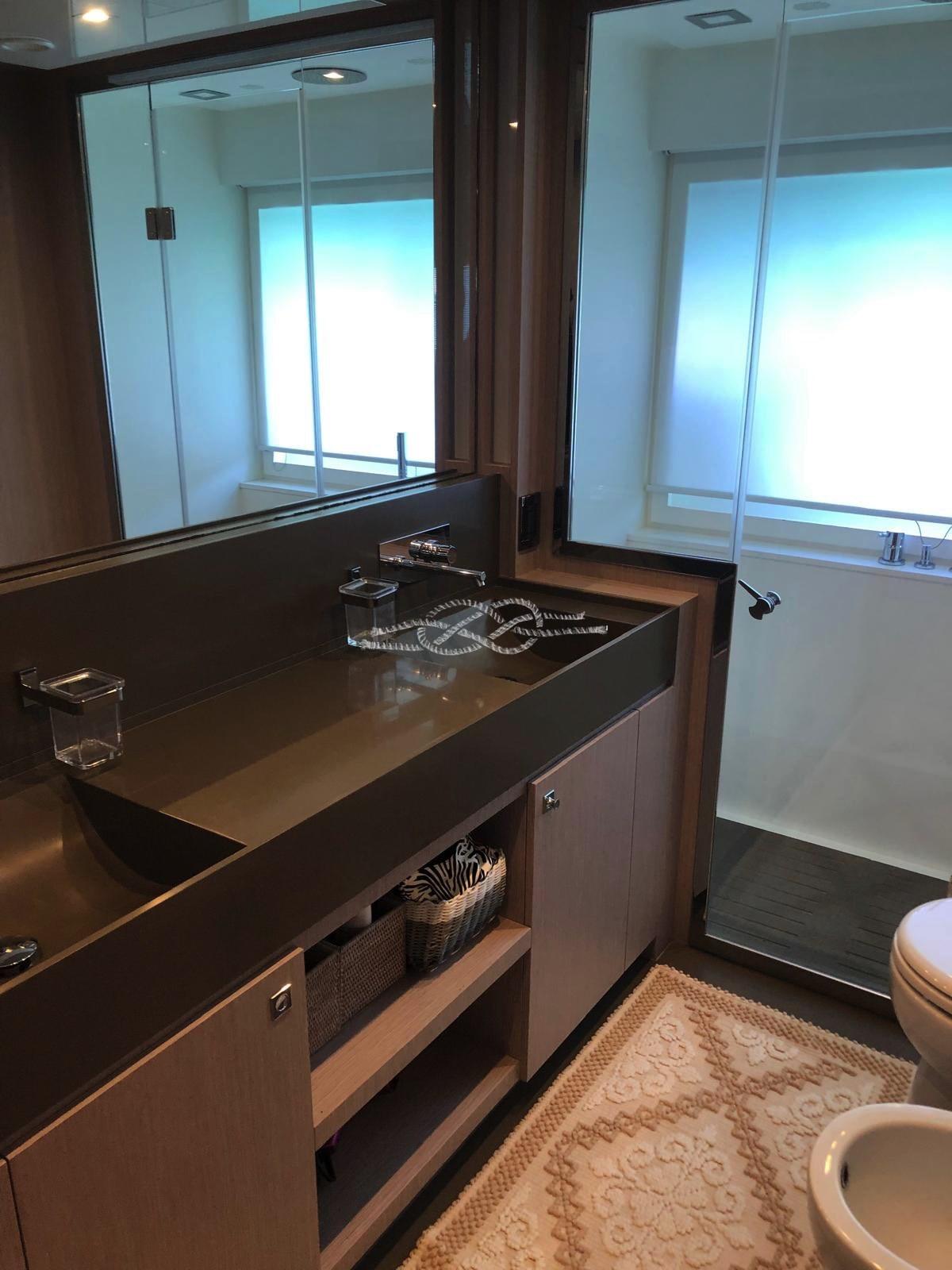 Two Seakeeper 9 stabilizers - ABTrac hydraulic bow and stern thrusters - retractable electro-hydraulic gangway - double anchor - tender lift stern platform - tender garage for tender and jet skis - Williams 385 jet tender - satellite TV antenna - LCD TV - stereo - air conditioning Condaria hot/cold - 2 x 28 kW Kohler generators - third control station at the stern - Miele 4-burner induction hob - Miele oven - fridge - freezer - Bosh dishwasher - ice maker - fridge outdoor - wet bar in the cockpit with sink and grill - washing machine dryer - Idromar watermaker.