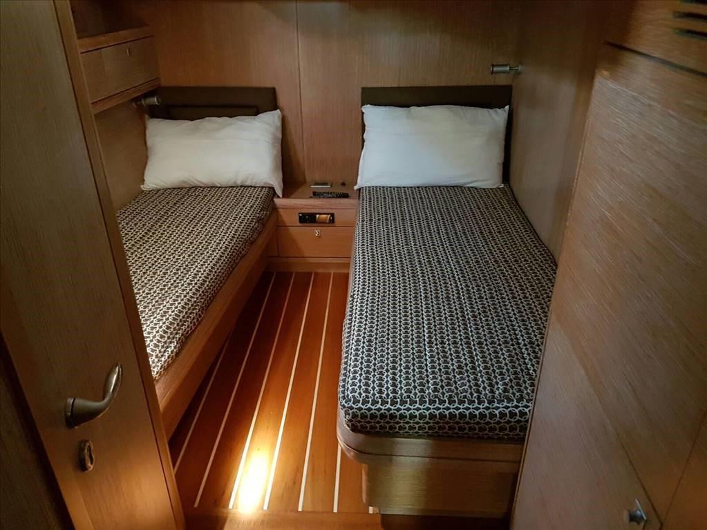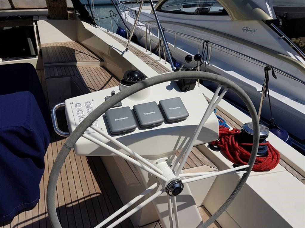 Sail area approx. 200 m2 - jib furler - hydraulic vang - double wheel steering - electric Max Power bow thruster - aft garage for tender - Zodiac tender - TV in dinette and all guest cabins - fridge - Bosh dishwasher - 4-burner induction hob - oven - Panasonic microwave - Climma 50,000 BTU air conditioning - washing machine - Shenker 180 lt/h watermaker - TV - Intellian 4-outlet satellite antenna - folding spray hood - bimini - bow and cockpit sunbathing cushions - inverter 24/220volt/1500 watts - electric winch in the bow - spy equipment with bowsprit - blue hull.