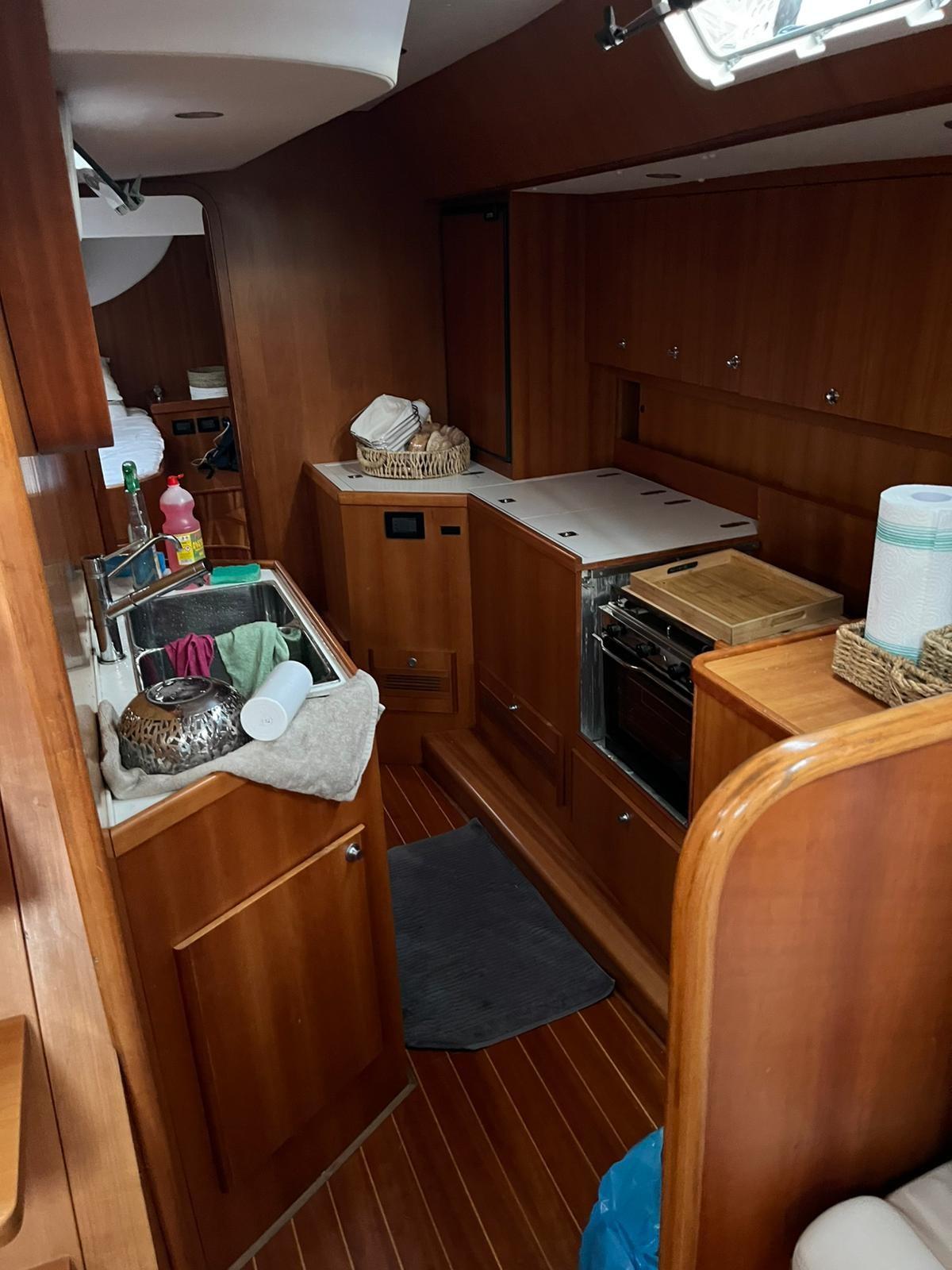 Electric bow thruster - hydraulic stern platform - generator - air conditioning - gangway - cockpit table - TV antenna - LCD TV - 3-burner gas hob - fridge - oven - Whirlpool dishwasher - spray hood - awning - sunbathing cushions on the deckhouse - Schenker watermaker - electric furler - steel bowsprit - mainsail, backstay and vang base with hydraulic movement.