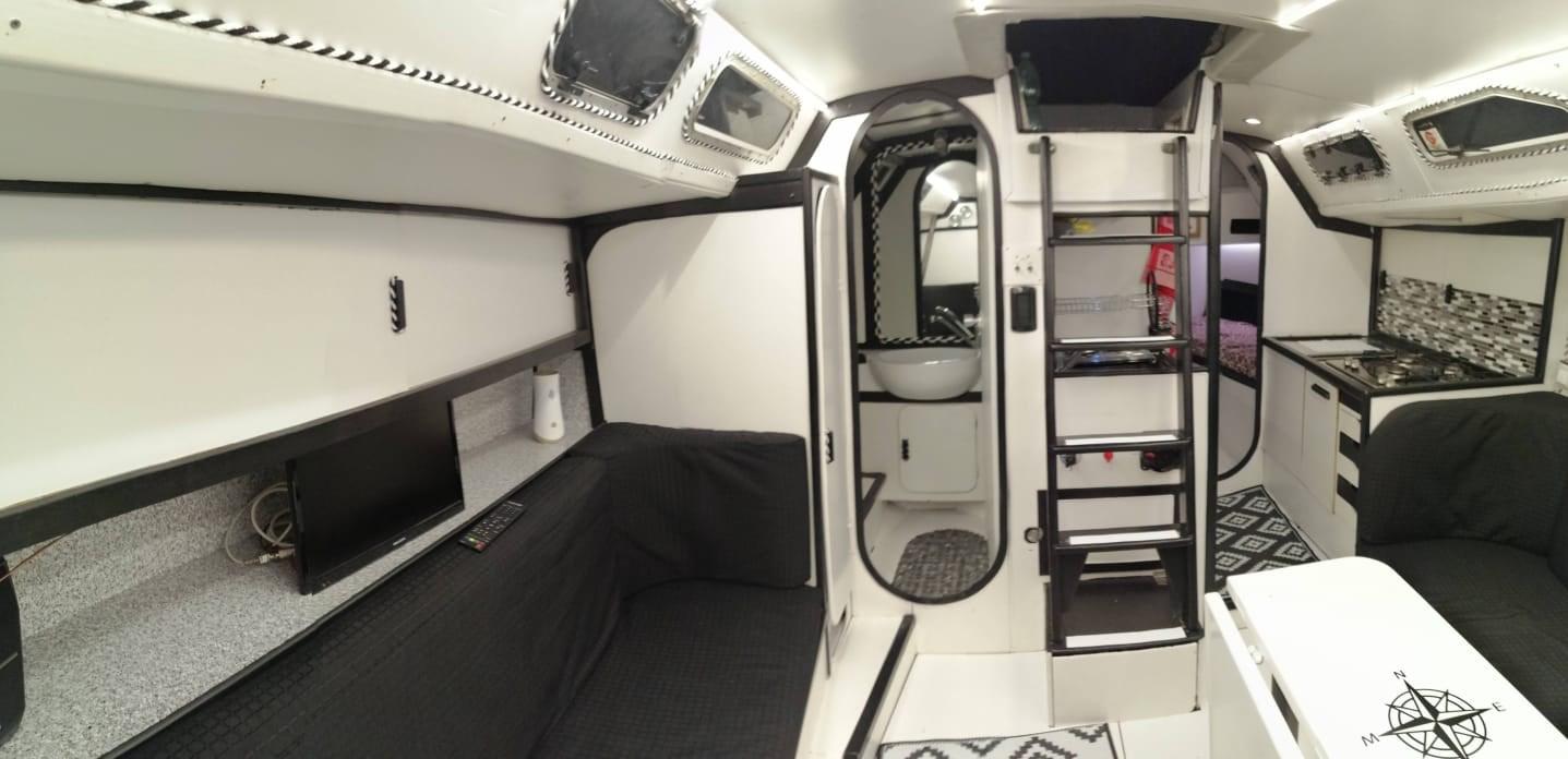 Owner's cabin forward with double bed - guest cabin aft with two single beds - large dinette with kitchenette - bathroom.