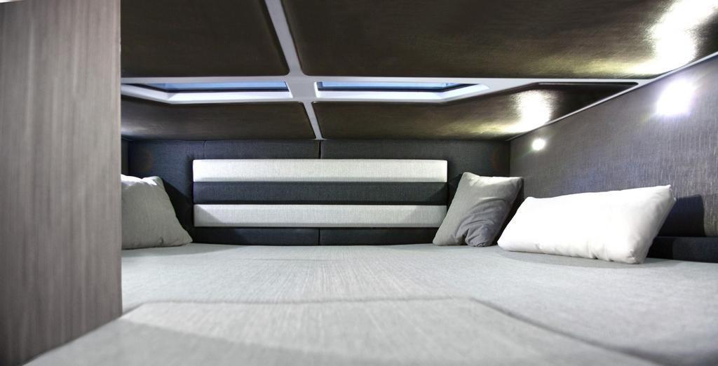 Cabin with V-shaped double bed - closed bathroom - two-seater berth.