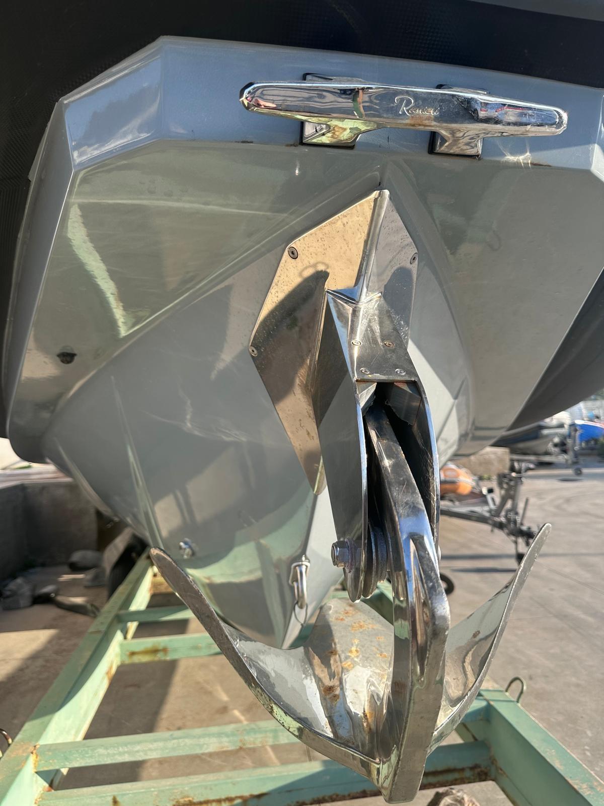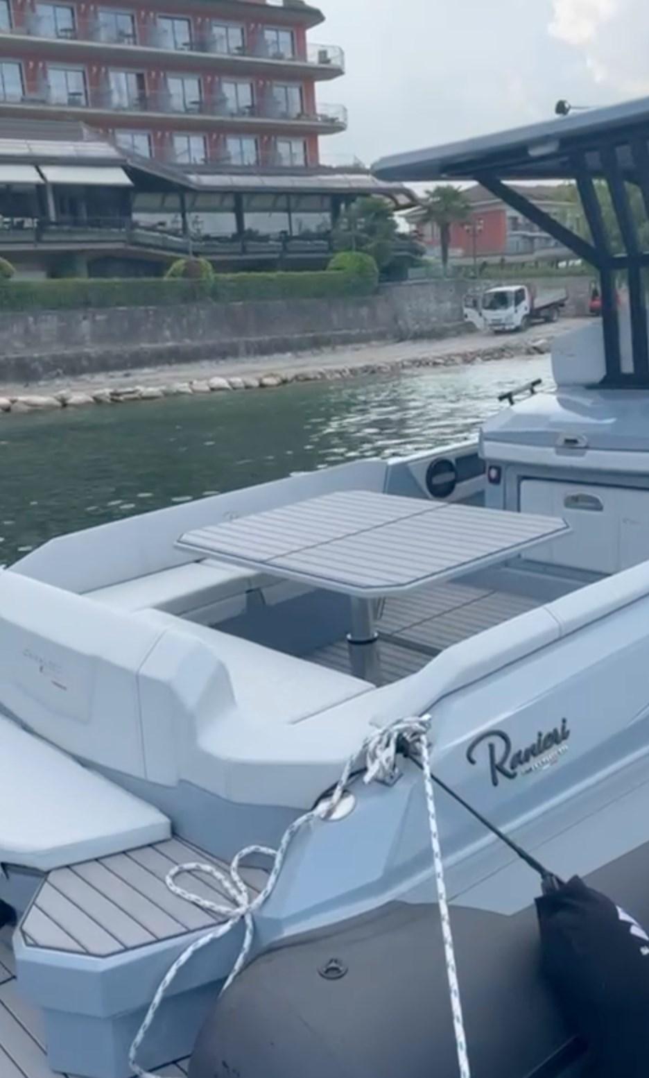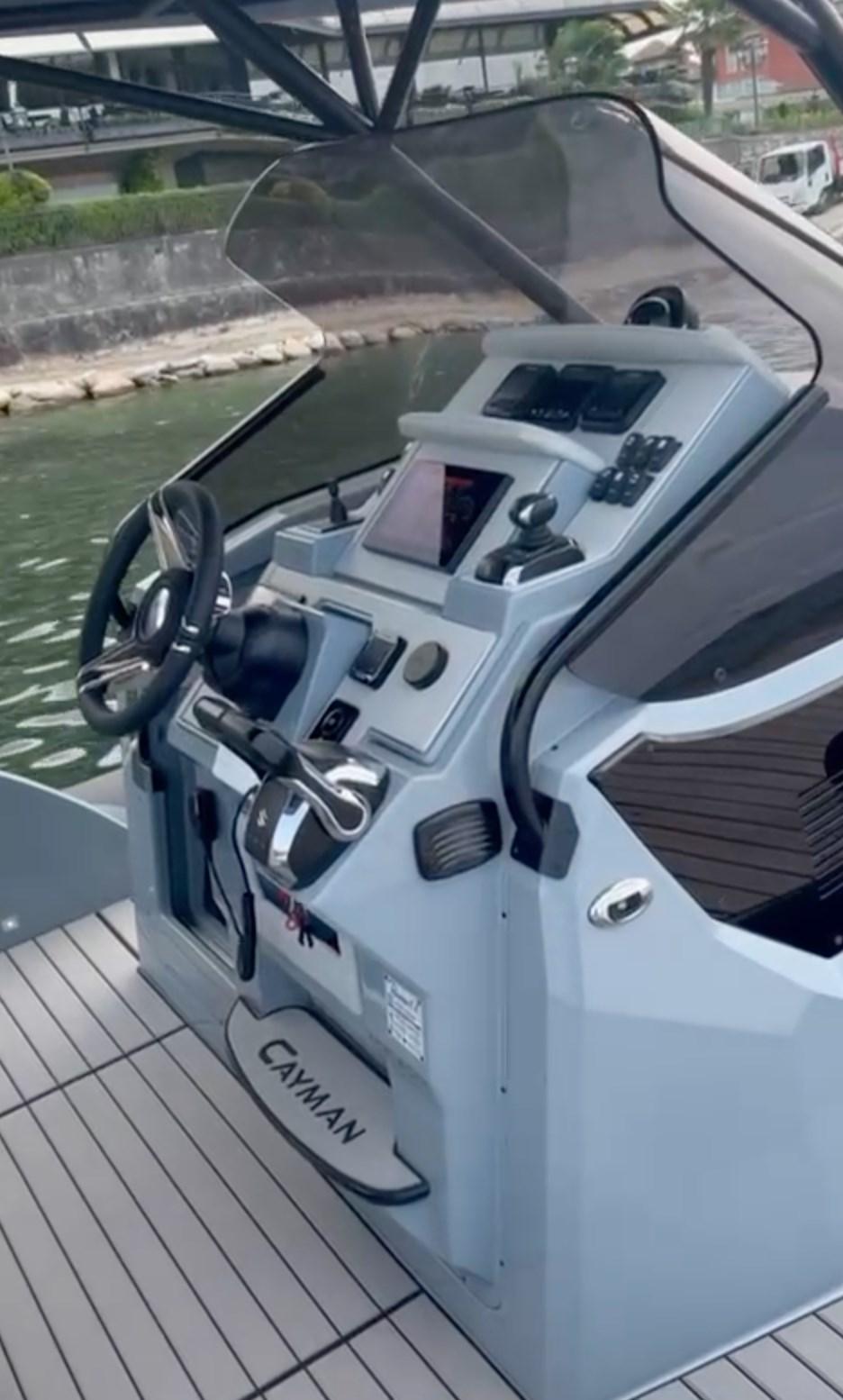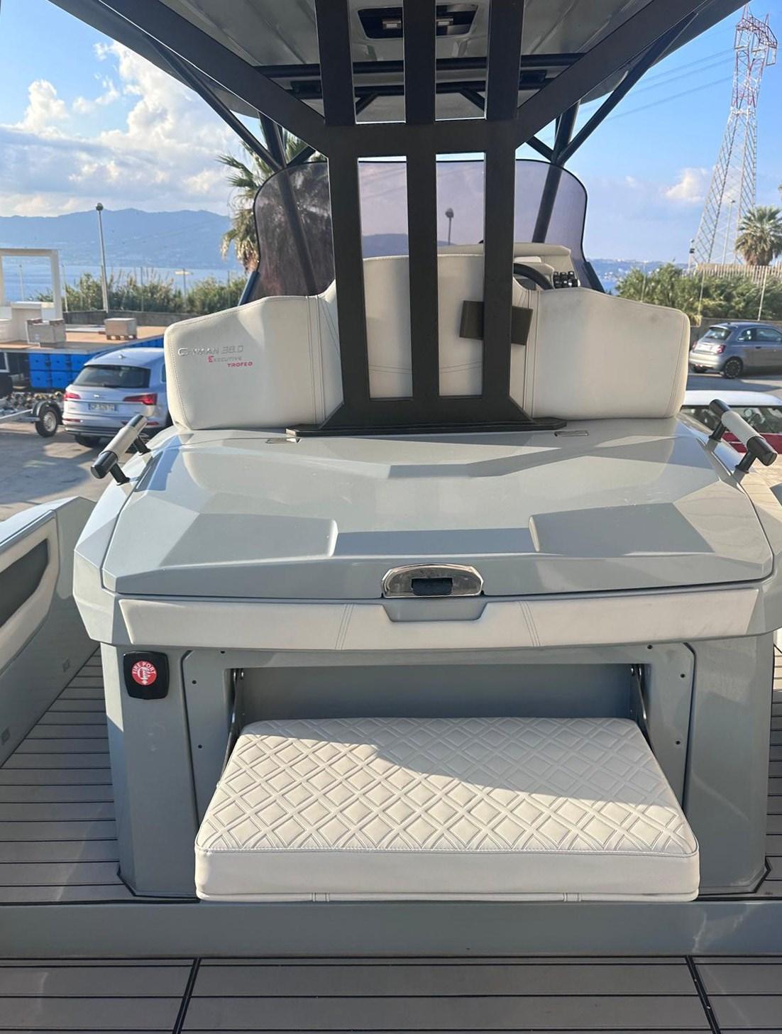 Manoeuvring joystick - bow thruster - bar cabinet with sink and electric hob - external fridge - T-Top - windlass winch - anchor recessed in the bow roller - Clarion hi-fi stereo - cockpit table with C-shaped sofa that can be converted into a sundeck - air conditioning - shore electrical socket.
