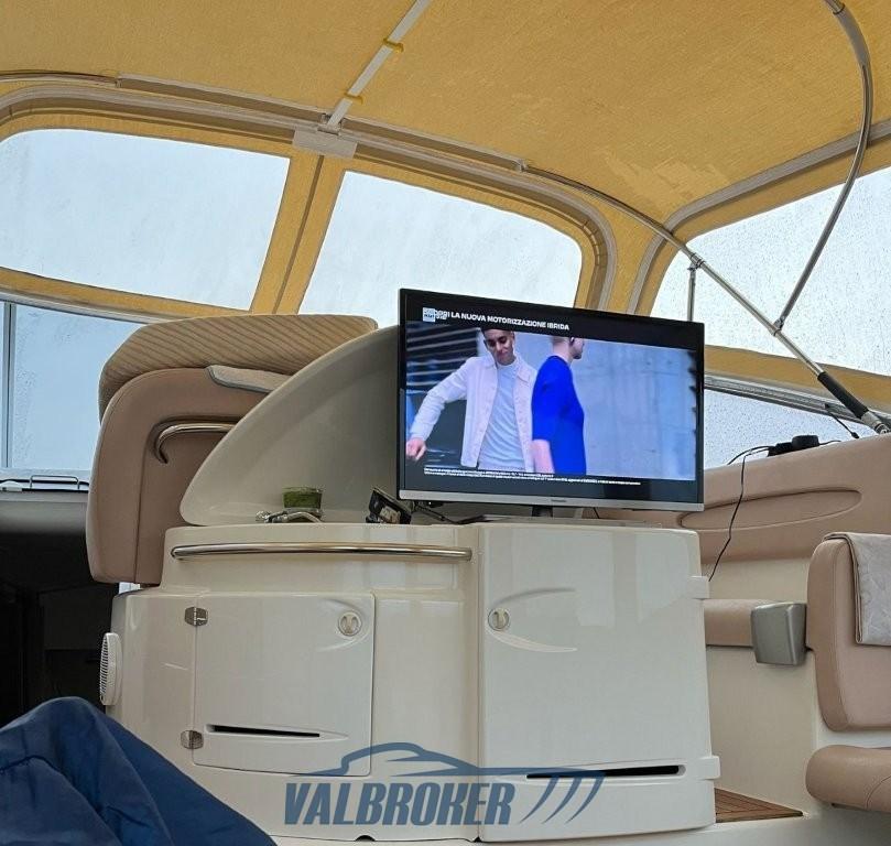 Bilge Alarm, Anchor (Bruce 10 kg con 50 m catena 8mm), Water pressure pump, Special Colour (wrapping marrone scuro 2023), Deck Shower, Hydraulic Flaps, Washbasin in the cockpit, Underwater lights (led blu), Gangway (elettrica con carabottino in teak e telo di copertura), Platform (teak 2024), 2 Automatic Bilge Pump, 2 Manual Bilge Pump, Teak Cockpit, Water harbor connector system (con riduttore di pressione e tubazione avvolgibile), Rollbar (vetroresina), Electric Windlass, 2 cockpit table (teak, uno convertibile in prendisole).