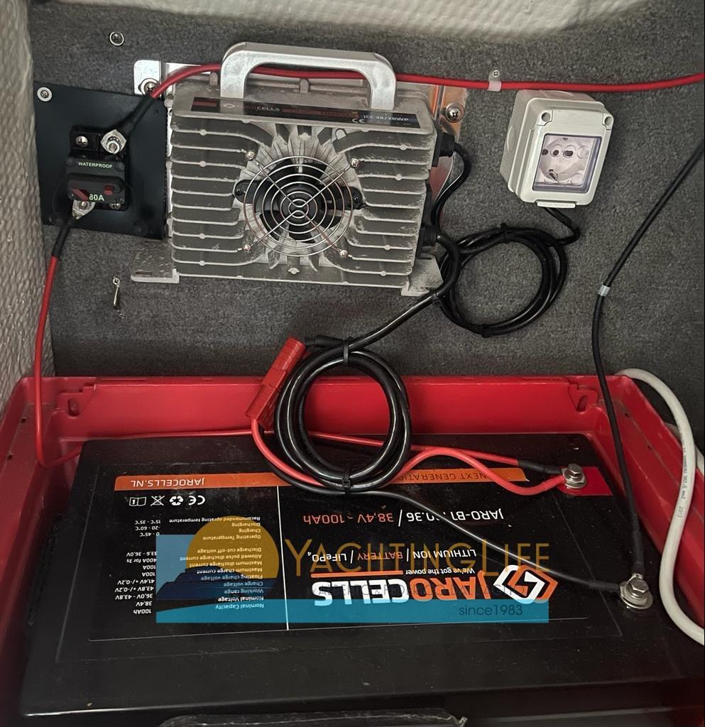 Engine Alarm, Water pressure pump, Deck Shower, Hydraulic Flaps (Bennet), Flaps Indicators (Bennet led), Washbasin in the cockpit, Courtesy Lights, Solar panels, Automatic Bilge Pump, Shorepower connector, Electric Windlass, Horn, T-Top.