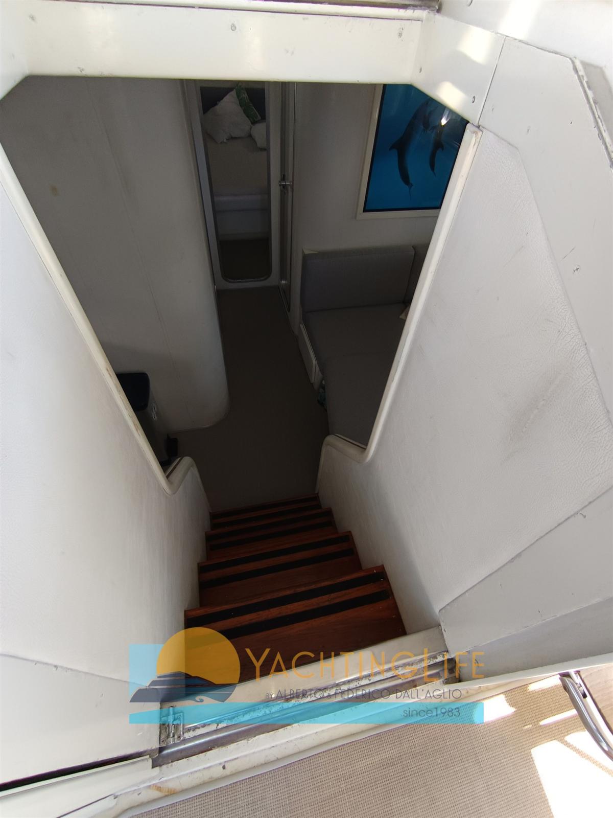 Engine Alarm, Bilge Alarm, Spare shaft, Water pressure pump, Deck Shower, 2 Secondary Propeller, Hydraulic Flaps (pompa nuova), Flaps Indicators (nuovi), Courtesy Lights (a led nuove), Underwater lights (Nuove), Outboard engine for tender (Suzuki 4hp 4t), Gangway (idraulica Opac a scomparsa), Platform (allungata), Automatic Bilge Pump, Entry door, Shorepower connector, Electric Windlass, swimming ladder (modificata), Tender (Eurovinil pneumatico), Horn.